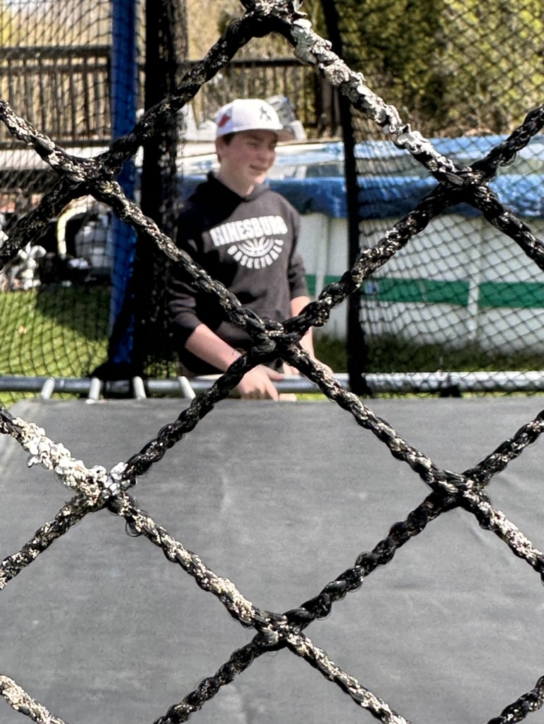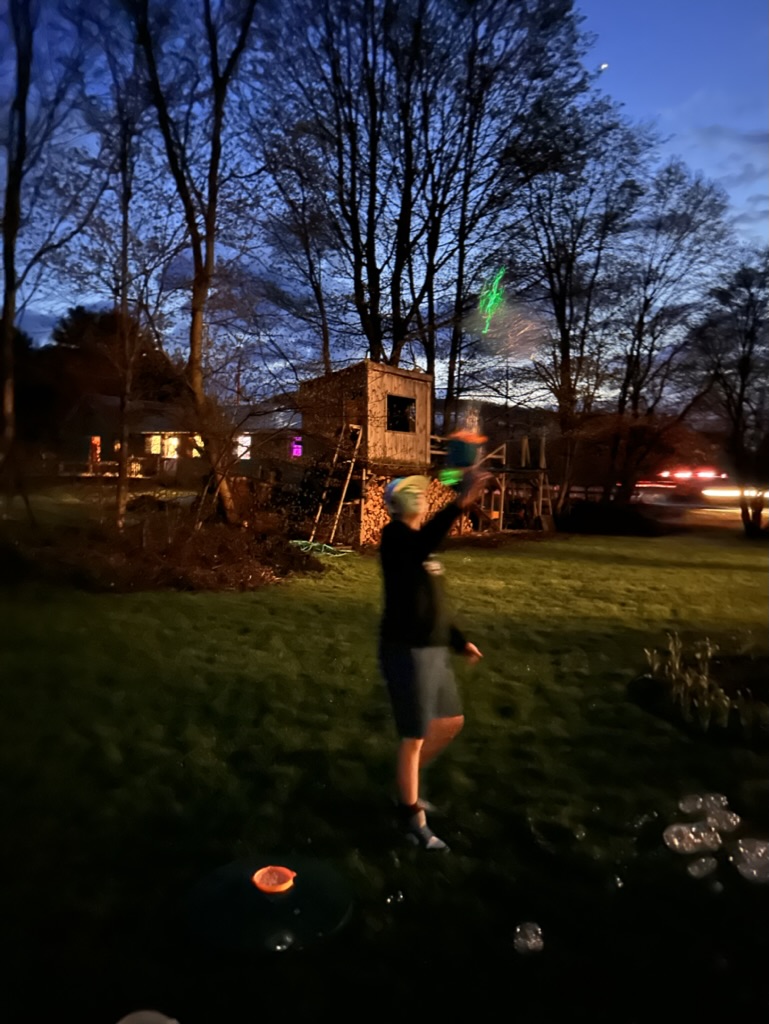 Finn is with us for another day. We celebrated spring by putting up the trampoline.. one of the most treasured spring rituals. Finn was a big help !