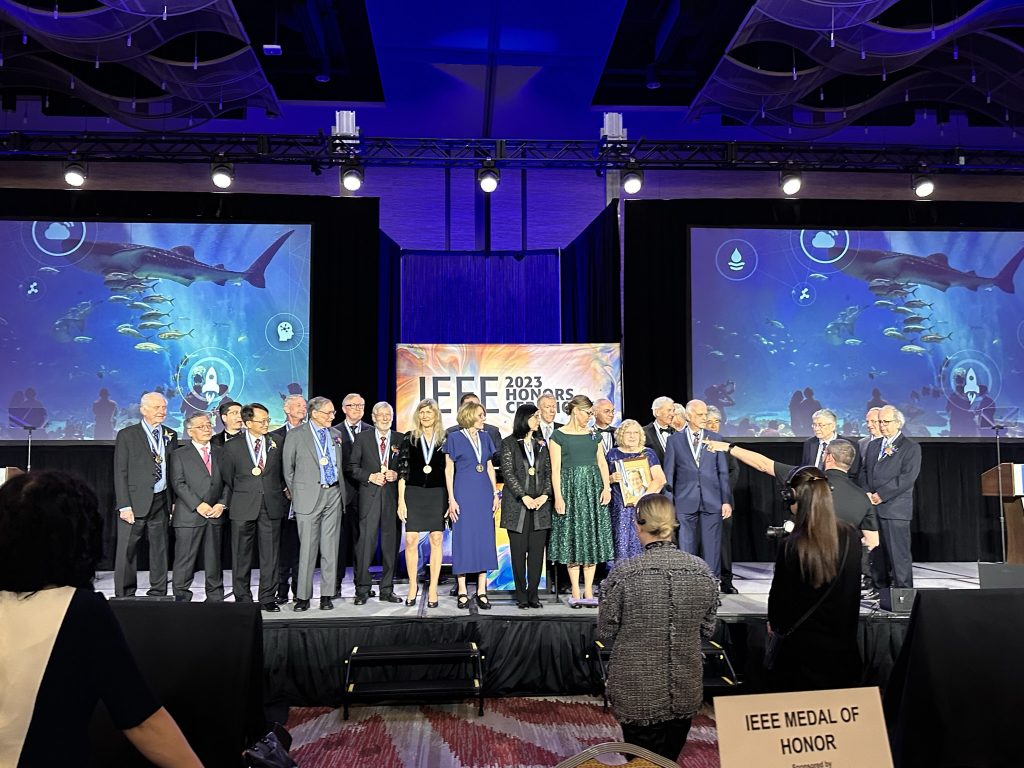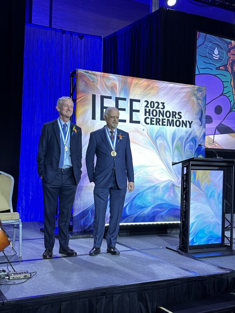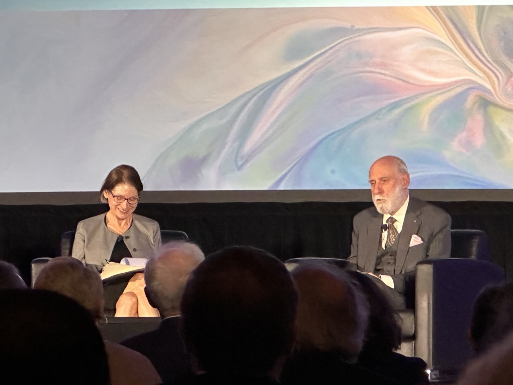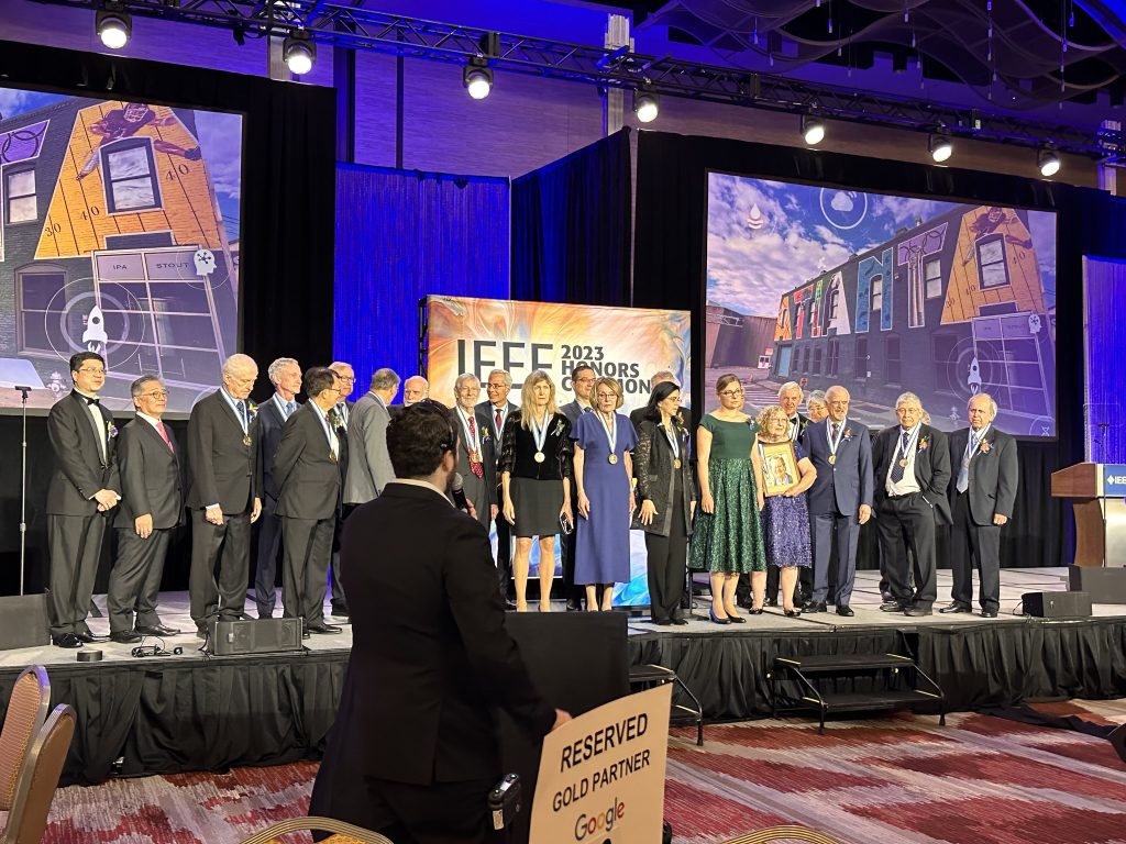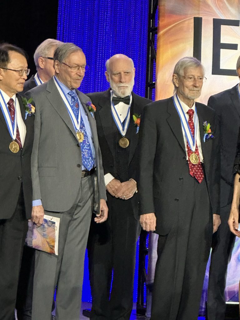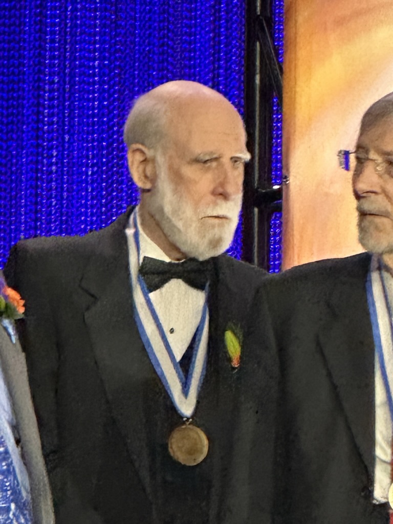 Today was the all day VICS Conference. It’s when the IEEE gives out its highest medals and awards. I The day was full of talks, panels, and presentations. I got to see some old friends and got to meet and hang out with several of my technical heroes . I was there to present one of the two awards that IBM had sponsored. The award I presented on IBM’s behalf was the John Von Neumann award “for outstanding achievements in computer-related science and technology” . The recipient was Dr. Tom Leighton, the co-founder of the content distribution company Akemi. It was a real pleasure getting to meet and get to know Tom. The other IBM Sponsored award was the the new Fran Allen Award for “innovative work in computing that led to a lasting impact on the field of engineering, technology, or science. ” My IBM colleague and friend Andy helped present the award to Prof Lydia Kavraki from Rice University for her work on probabilistic programming for robotic motion planning. I was particularly happy to meet this awardee as Fran Allen was a friend of mine. She was the first Woman to become and IBM Fellow and the first woman to win the Turing Award ( sometime called the ‘noble prize of computer science”) . My favorite speech was by Dr Vint Cerf, the co-founder of TCPIP, the underpinning of the Internet. Vint was interviewed early in the day and gave a great account of his career and life. I was very taken by his story meeting his wife, who became deaf at age 3… and her path of getting a cochlear implant first at age 53 , then again at age 63. .. That allowed her to enjoy music and talk on the phone for the first time. He said when she got hte first implant it was like having a teenager in the house.. she wouldn’t get off the phone :-). What was so cool is that the husband and wife team of Dr’s Ingeborg & Erwin Hochmair won the Alexander Graham Bell. award that same day for their contributions to the invention of the cochlear implant !