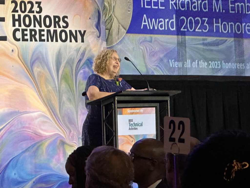 I was also deeply touched by the story of one of the award recipients Ross Stone. the winner of the IEEE Richard M. Emberson Award. Stone died. just one month before the ceremony and hs wife Susan was there to receive the award. She carried a picture of her late husband up to the stage as she received the award on his behalf. I spoke with her about it.. she was happy, sad, proud and brave.