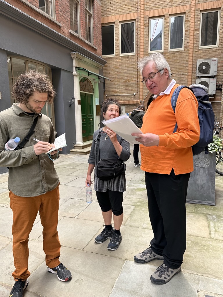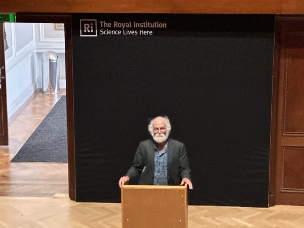 Today was our first full day in London. We had arranged with Laurence Stales for a guided science tour of London. Laurence has a web site we found (https://www.laurenceswalks.co.uk/) that we found online. We corresponded with him before the trip and he arranged the most wonderful 6 hour ‘back streets of science’ tour. It was fantastic. Laurence is a learned, funny, friendly and articulate interpreter of science He’s a mechanical engineer, a published author and an archivist in the Royal Institution. . The perfect English science guy !