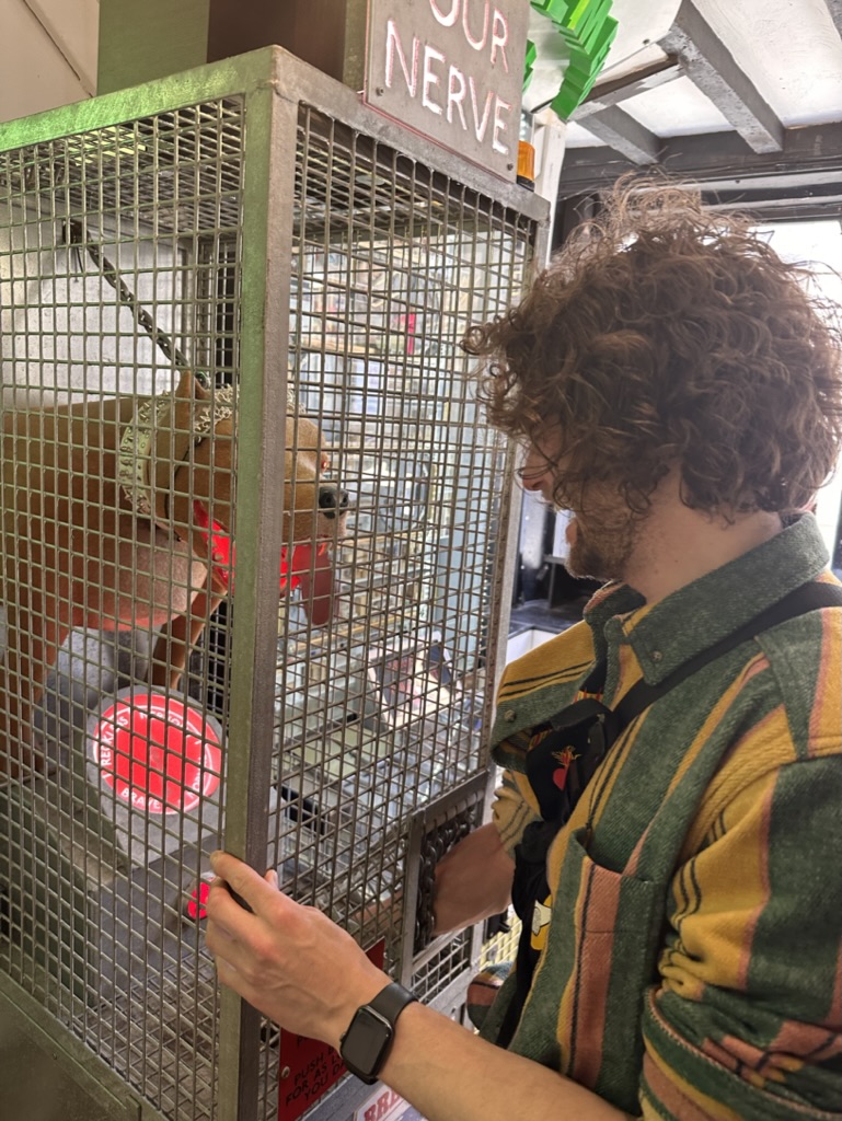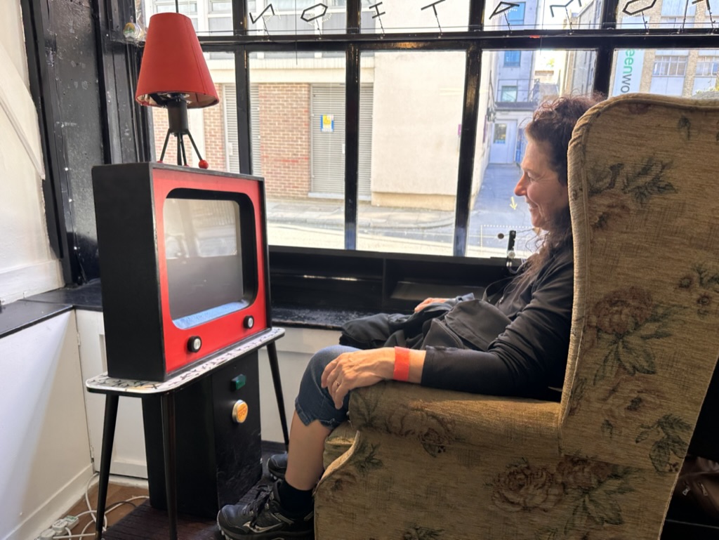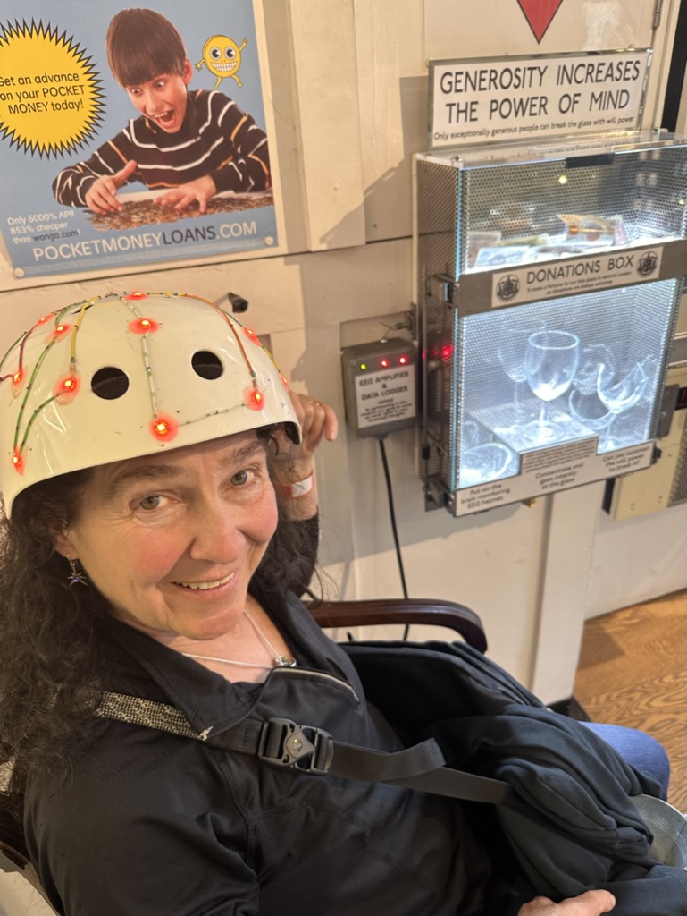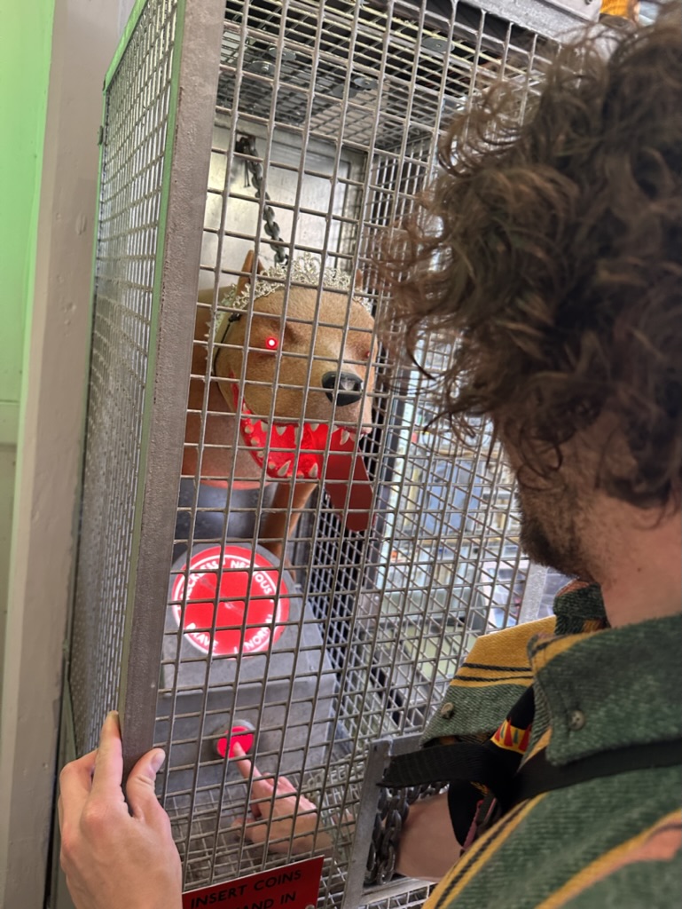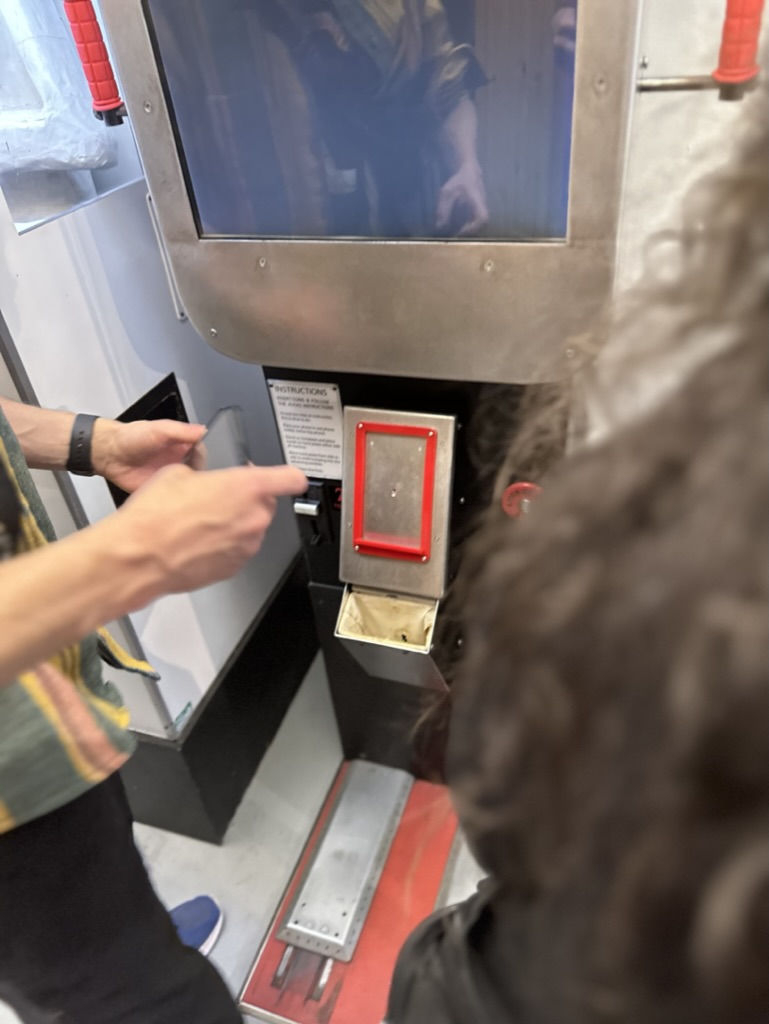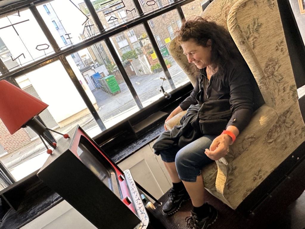 We went eight from our train to the Museum of Novelty Automation . It is a small place that shows the amazing contraptions from Artist and Inventor Tim Hunkin.. We first came to know his work from the wonderful water clock that once was in Neils Yard.. We used to visit when Diane and I lived in the UK from 1984-86 . The clock is no longer there.. but this museum had more than a dozen of Hunkins peices.. >. You baught tokens..and used them to interact with the exhibits.. they were so amazing and fun ! FOr example.. you put you hand in a cage where an animated dog luncges and growlss a, slobers and snaps at your hand.. the longer you keep your hand in there .. the more you win. Or a game you play by steering a runnign man through a forest of cell phone zombies.. people walkign while looking at the phones… Or another where you put an object into a try and an automata descides whenter its art or not.. or an eclipse booth, or nuclkear control rod insertion gamwe with a defective clw.. or … or .. or…. .. it was nuts !