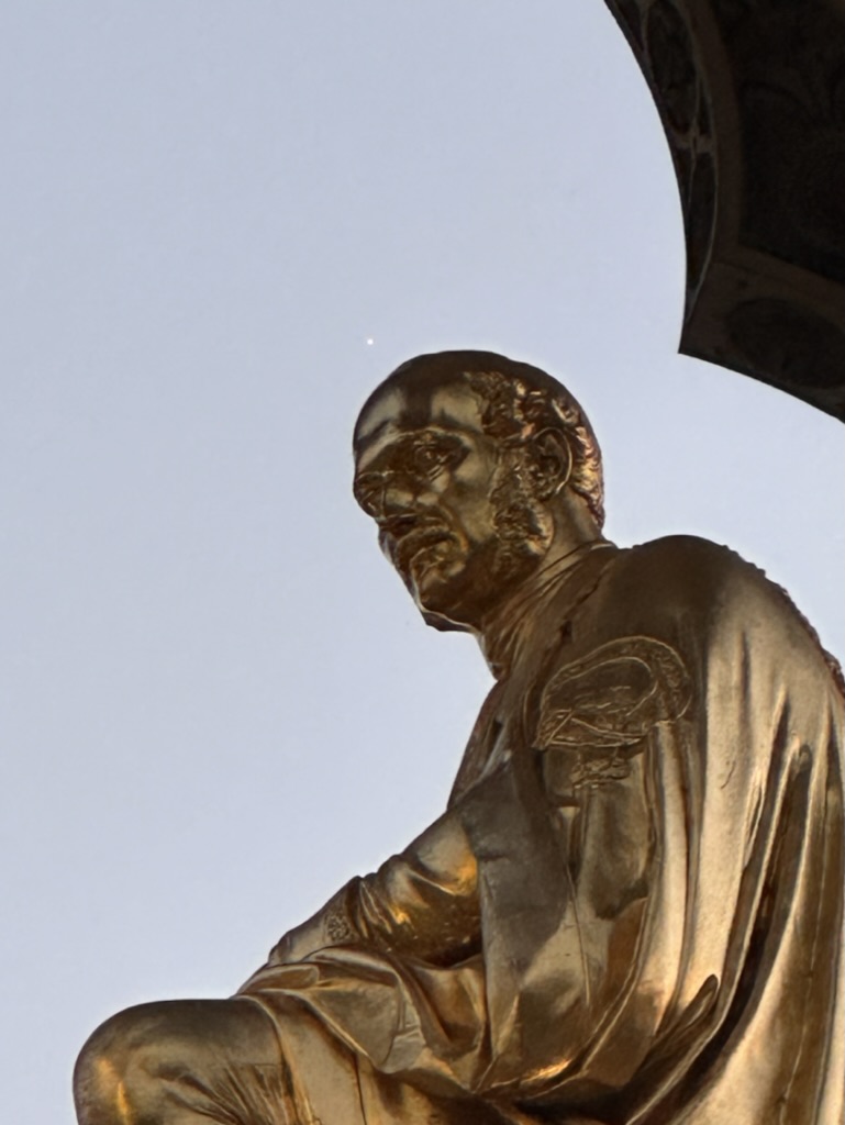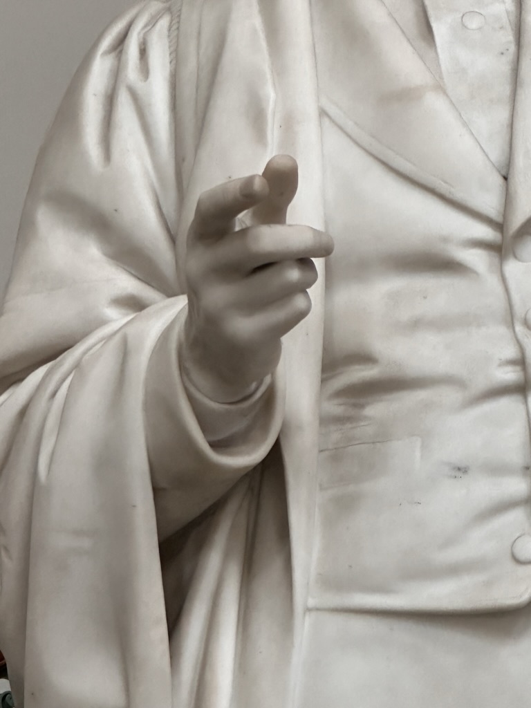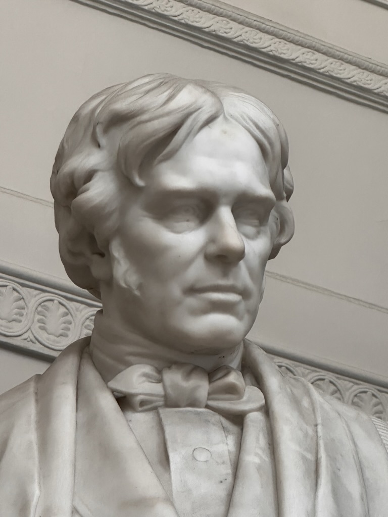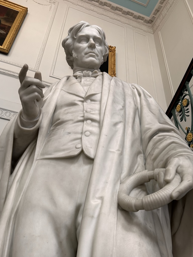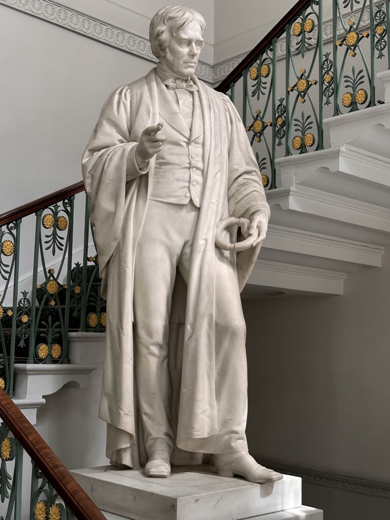 The building is beutiful.. there4’s a model of the physicists Michael Farady,. one of the most famous lumns.. note his hand nt the form of the right hand rule !