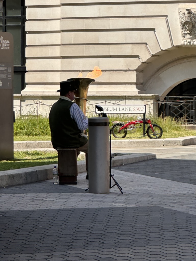 We spent about a half a day at the Museum of Natural History.. we took off from there to check out the Welcomme (yes … two ‘M’s” ) across town..we ran into a guy playing a flaming tuba !