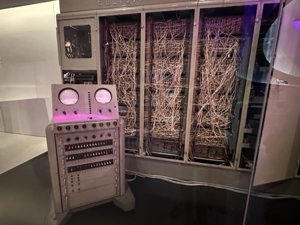 Wed misstimed our visit a bit as the museum of computing was not open on Friday.. btut the larger Bletchly park museum was open.. and that turned out to be about as miuch as we could fit into our brains.. The museum is really impressive. Wesley Park started in the 1930s as a secret outpost where English intelligence would gather wireless Morse code communications from the Germans, Japanese and Italians and decrypt them using a variety of methods… Most of them intensely manual. The place was chosen because it was a nondescript rundown manor house. It was retrofit with all sorts of offices and Barricks and canteens… And at one point employed more than 5000 people!… Day in and day out messengers came in on motorcycles carrying written transcriptions of intercepted Morse code messages.… There was a large array of scientists as well as military people there working on cracking the ever more sophisticated codes. The museum is laid out as it was left… Sprawling with a bunch of mix of architecture some of it very old some of it dating from the second world war. You really got a sense of what it was like to be there. We took a guided tour through some of the grounds… We saw the original manor house which had the first 150 people working in it.… We toured the radio center and large parts of the museum where you could see where people translated codes filed them punched cards etc. It really gave you a sense of what it was lik. There were some amazing displays of equipment and personal affects of some of the people who worked here. The most famous of which was Alan Turing .