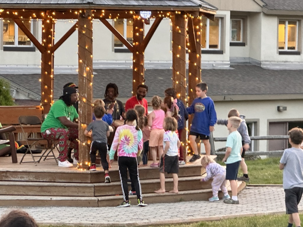 After the show, the kids in the audience stormed the sstage to talk to the drummers