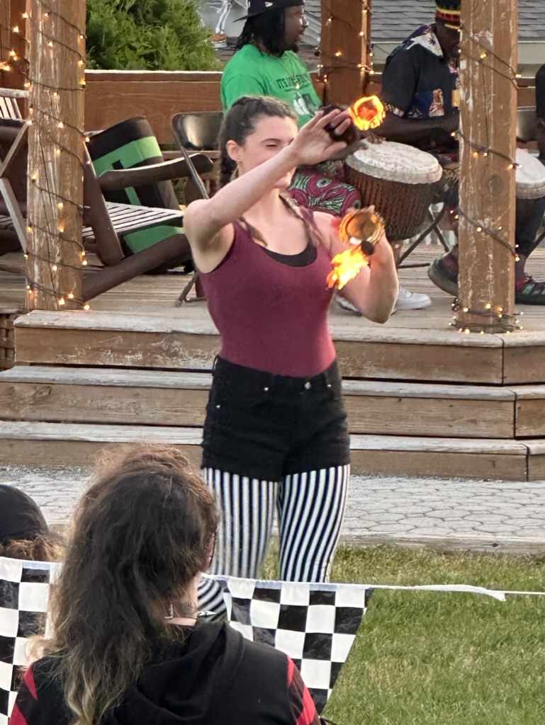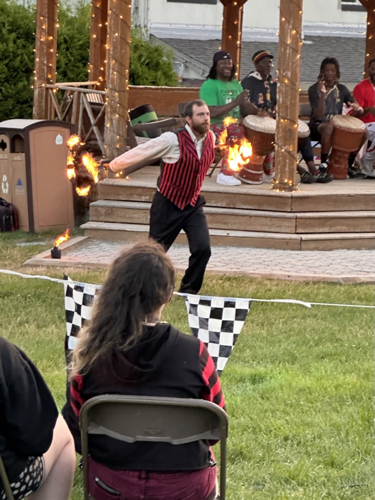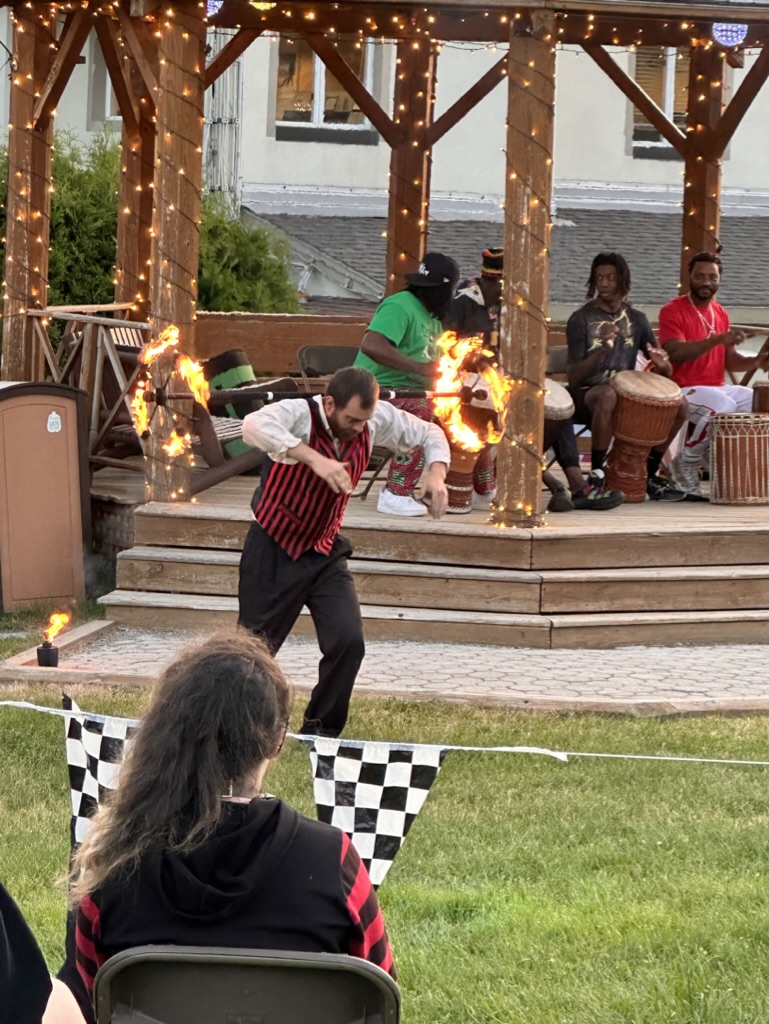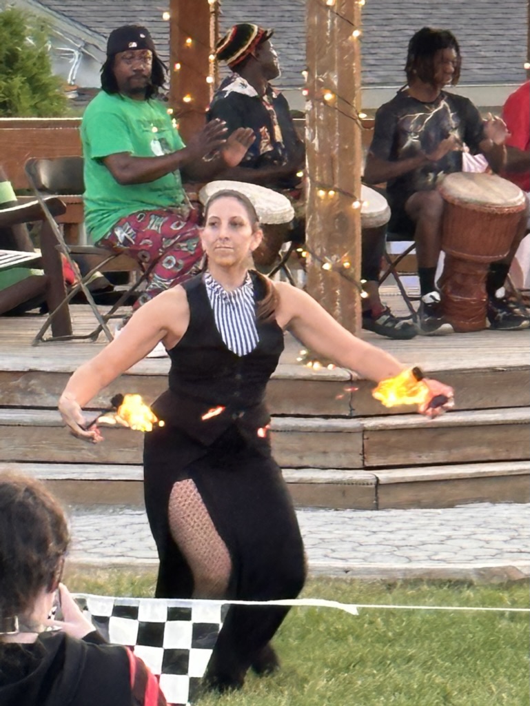 There were three amazing drummers accompanying the fire dancers tonight.. it was a great beat !