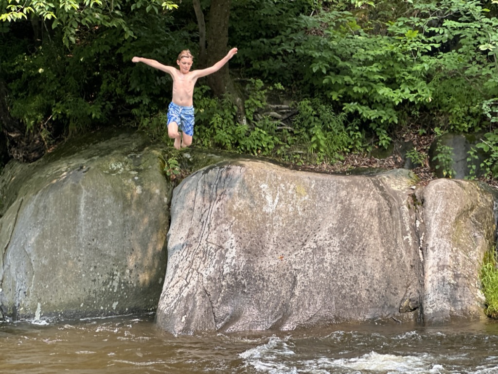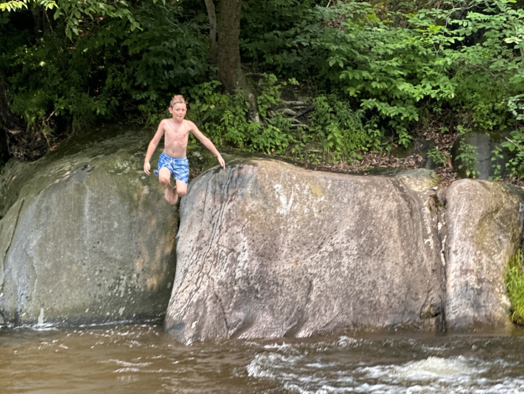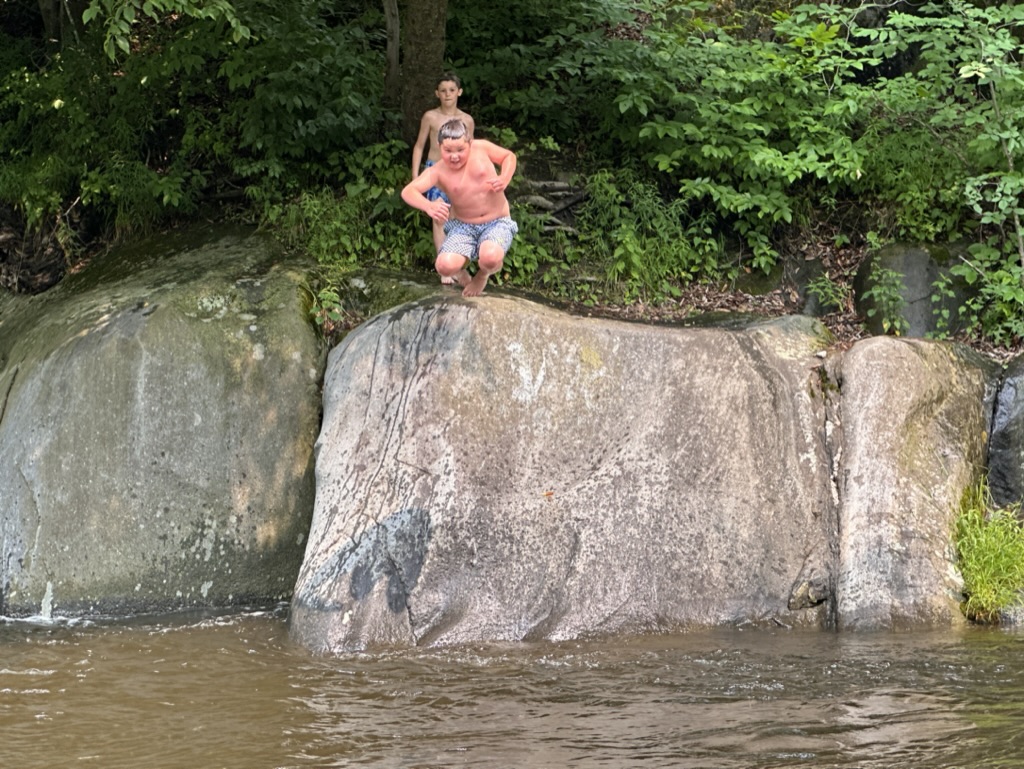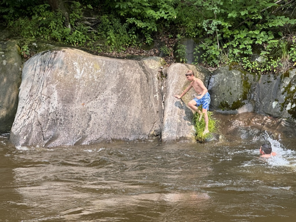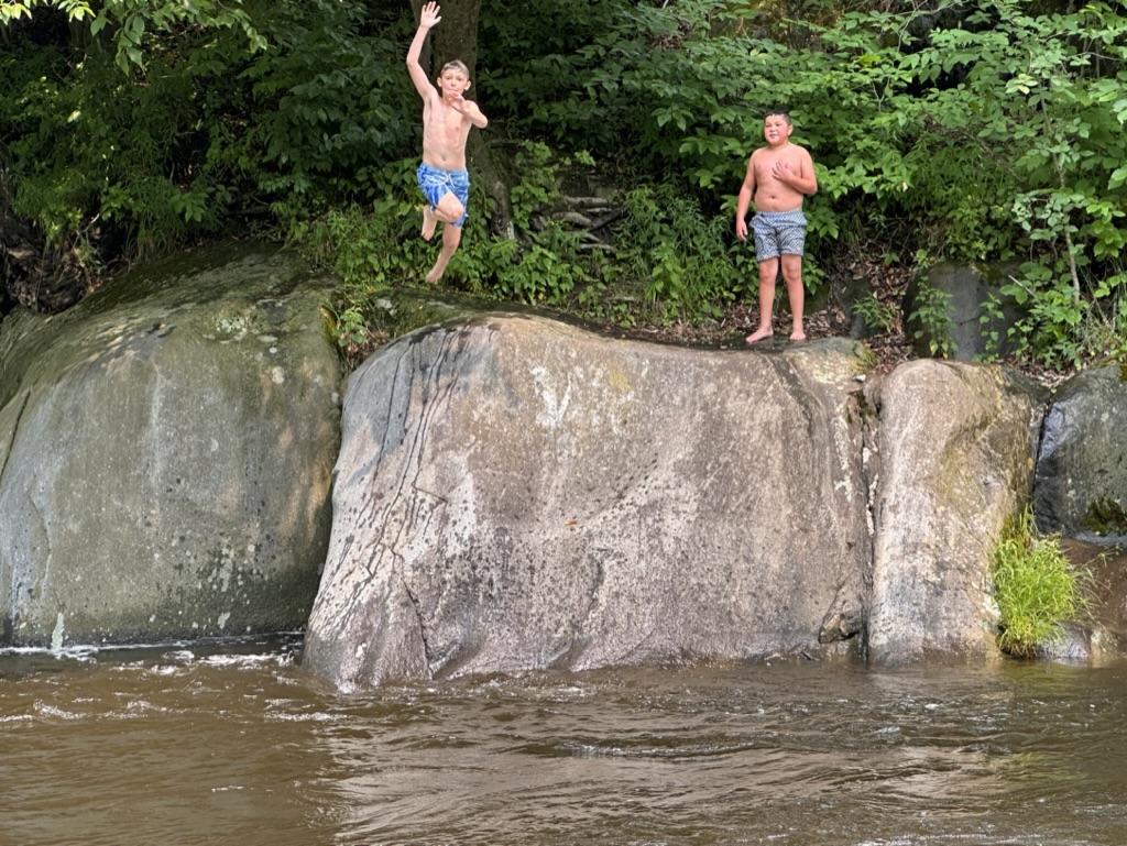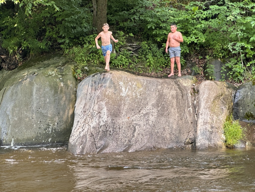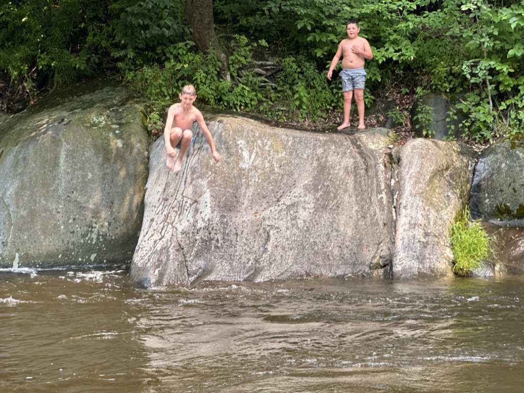 Later we caught one more of Masons soccer match.. And then came back to t he house with Mason. Emma, Elizabeth and Mason’s friend Mikey and his parents. Mikeys dad was the coach of the team. They were all so nice ! We took them down to swim in the Huntington.