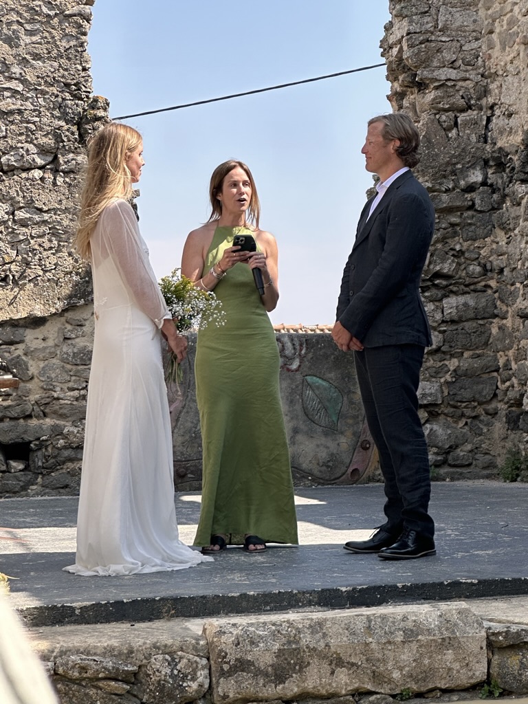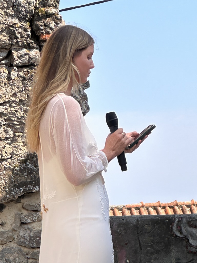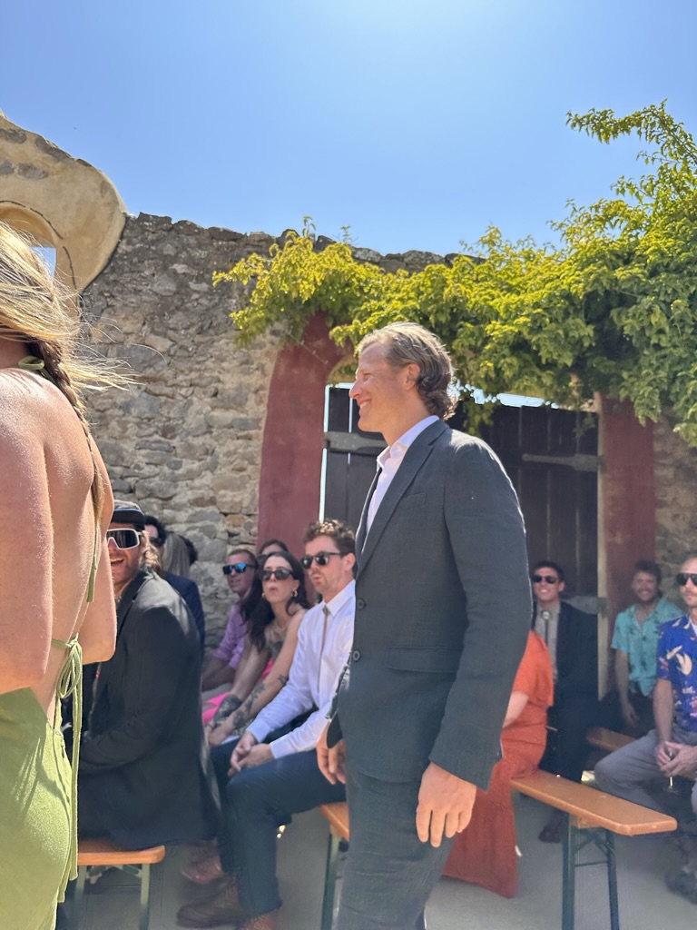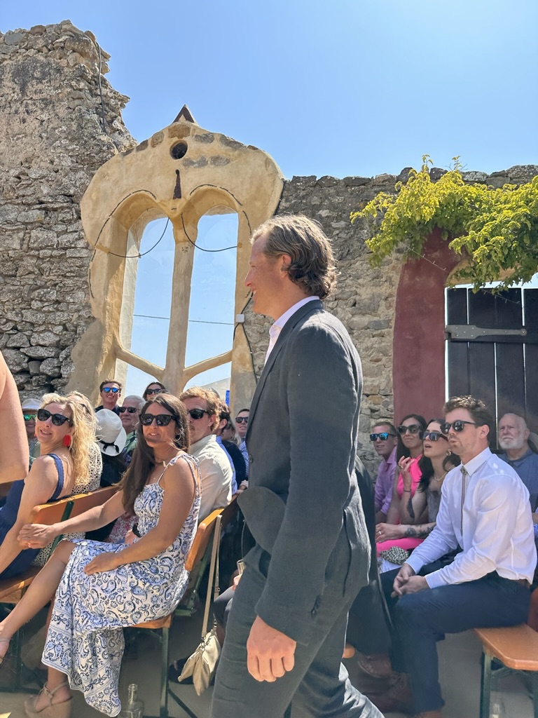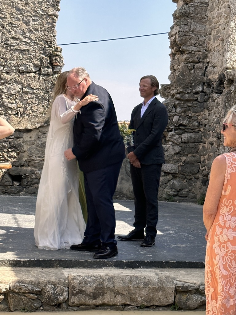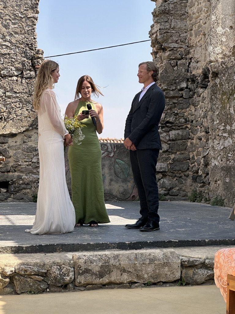 In a short bit. we were all called into the room where the wedding would be.. I say “room” .. but it was actually a many hundred year old runoi of a monestary that had long said goodbye to its roof :-).. We all sat down and waited.. The weather and setting were truly perfect !
