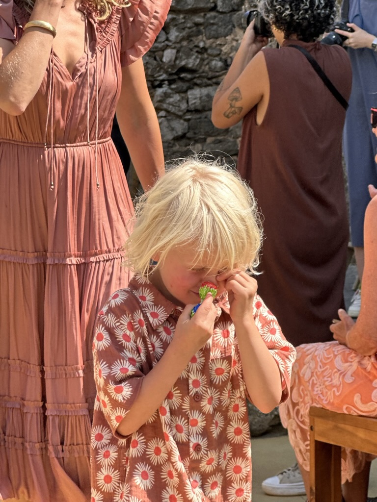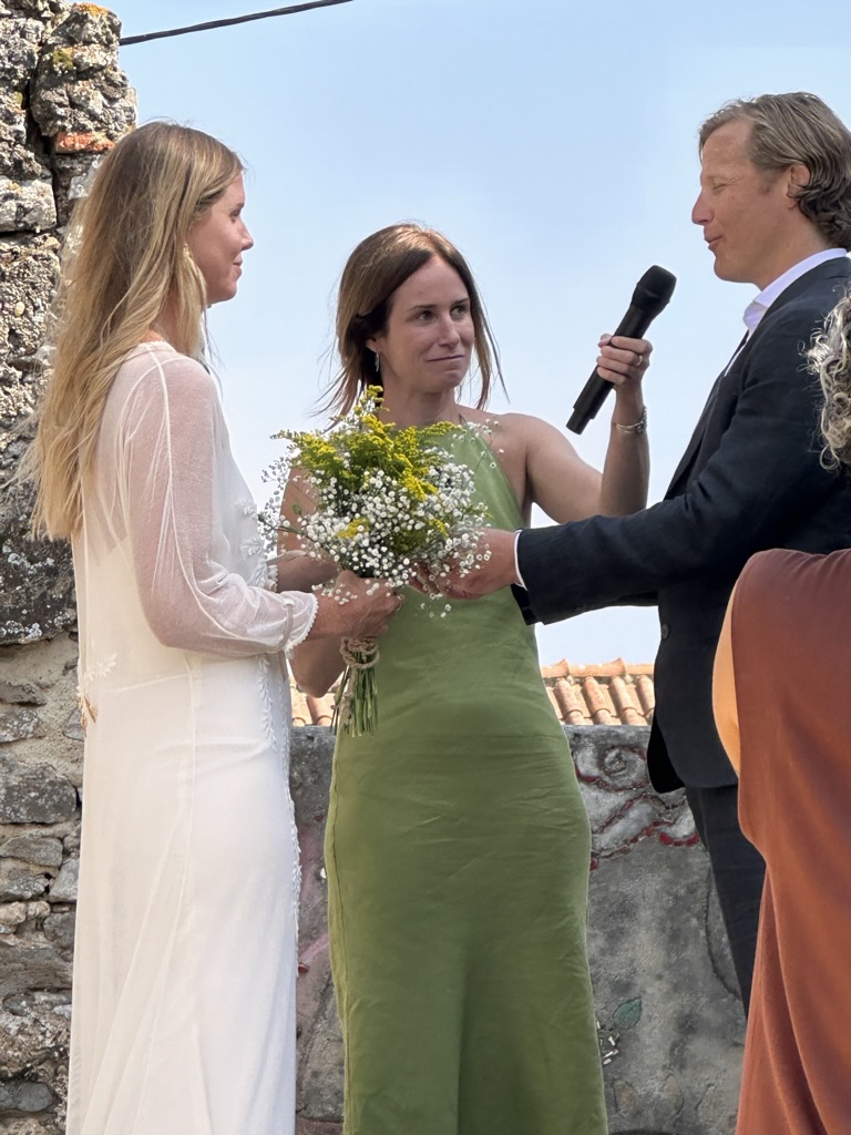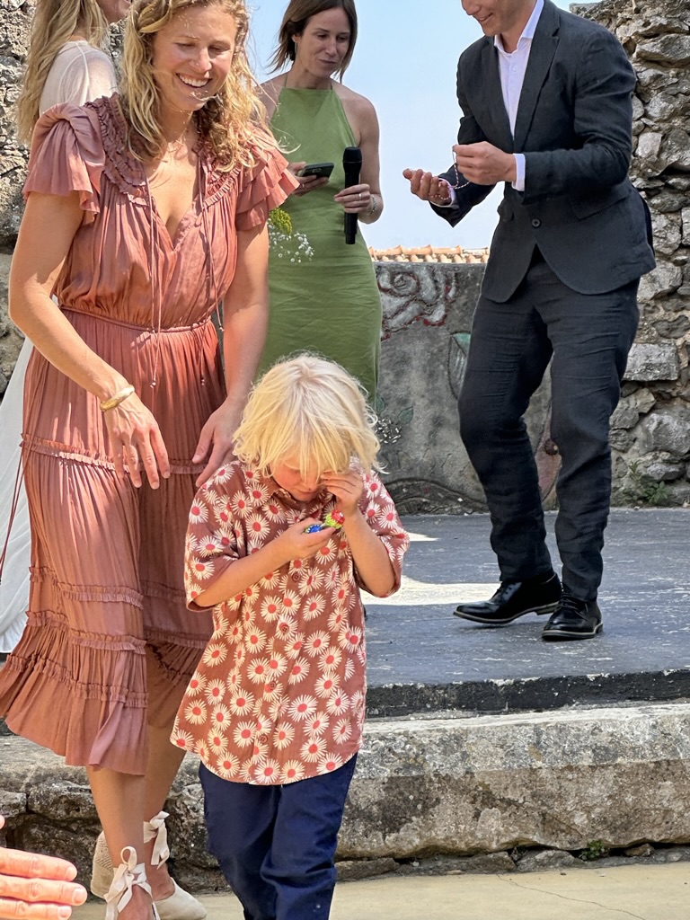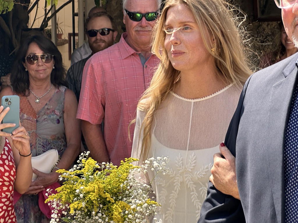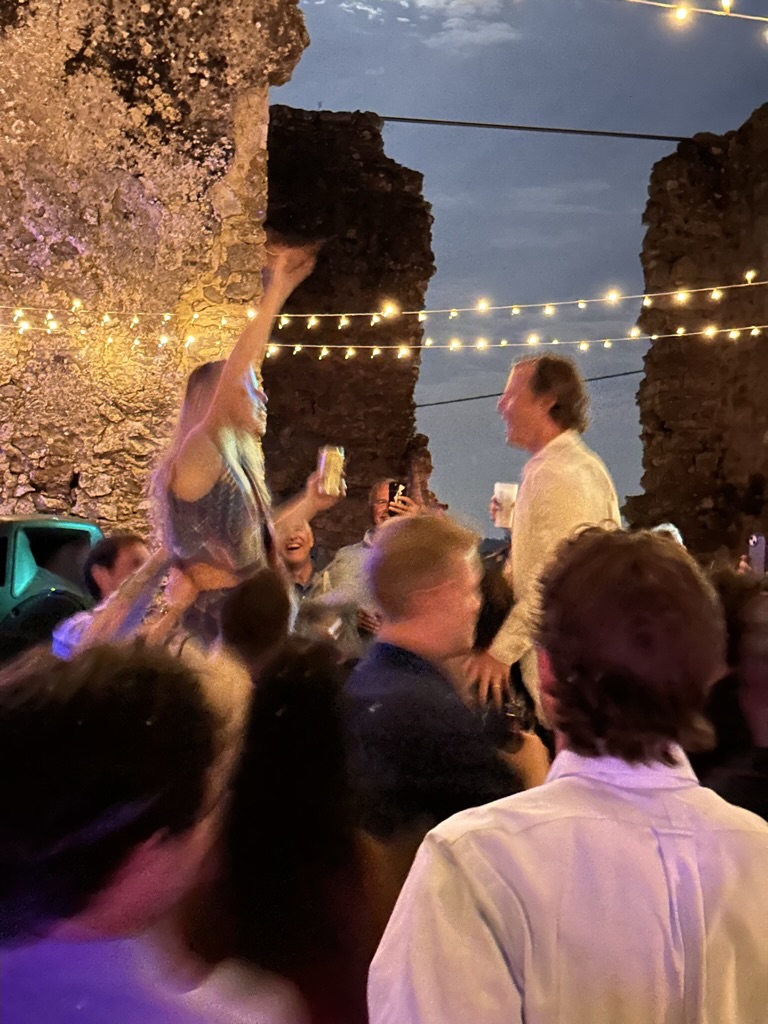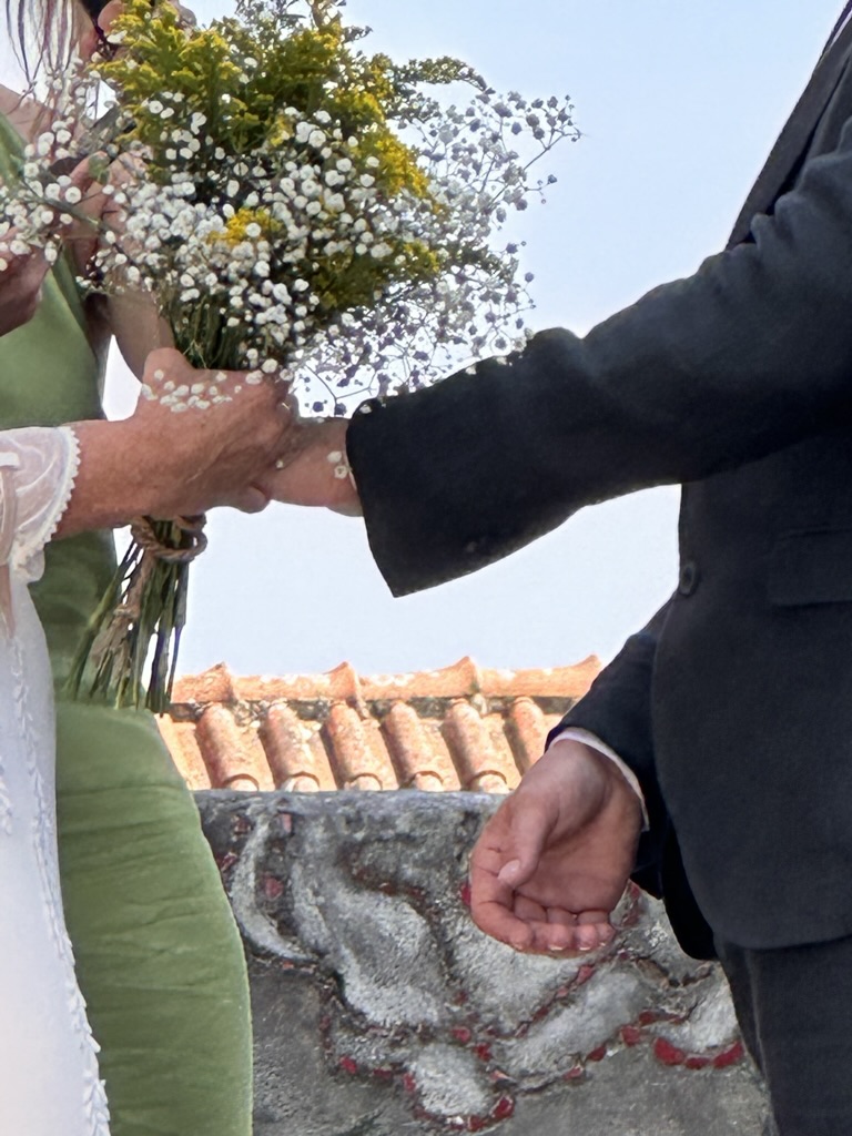 In a short bit. we were all called into the room where the wedding would be.. I say “room” .. but it was actually a many hundred year old runoi of a monestary that had long said goodbye to its roof :-).. We all sat down and waited.. The weather and setting were truly perfect !