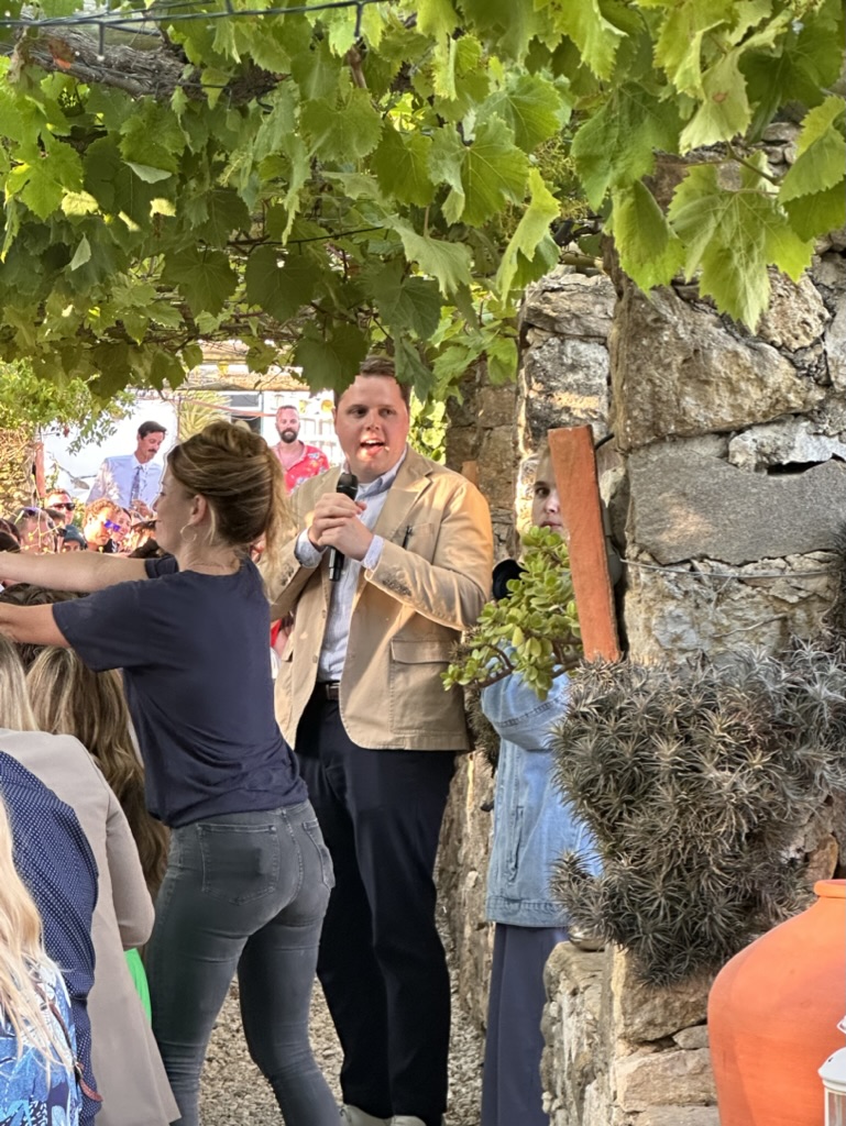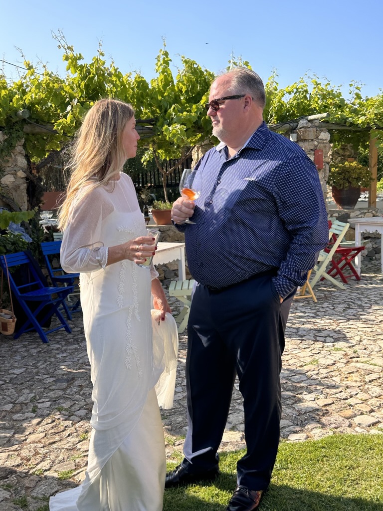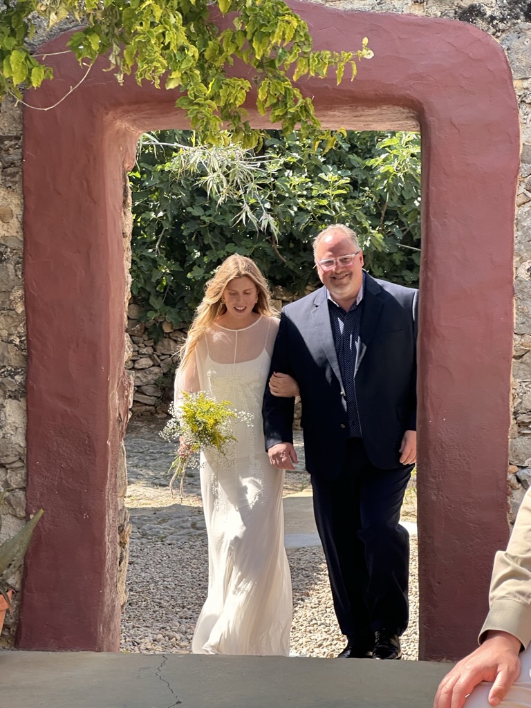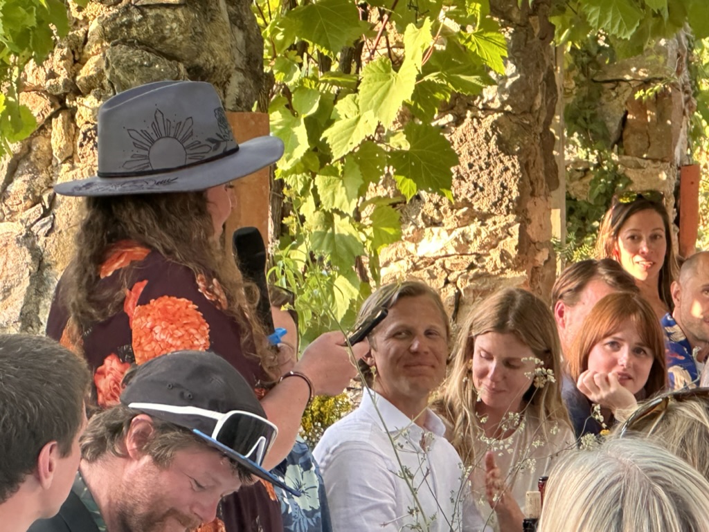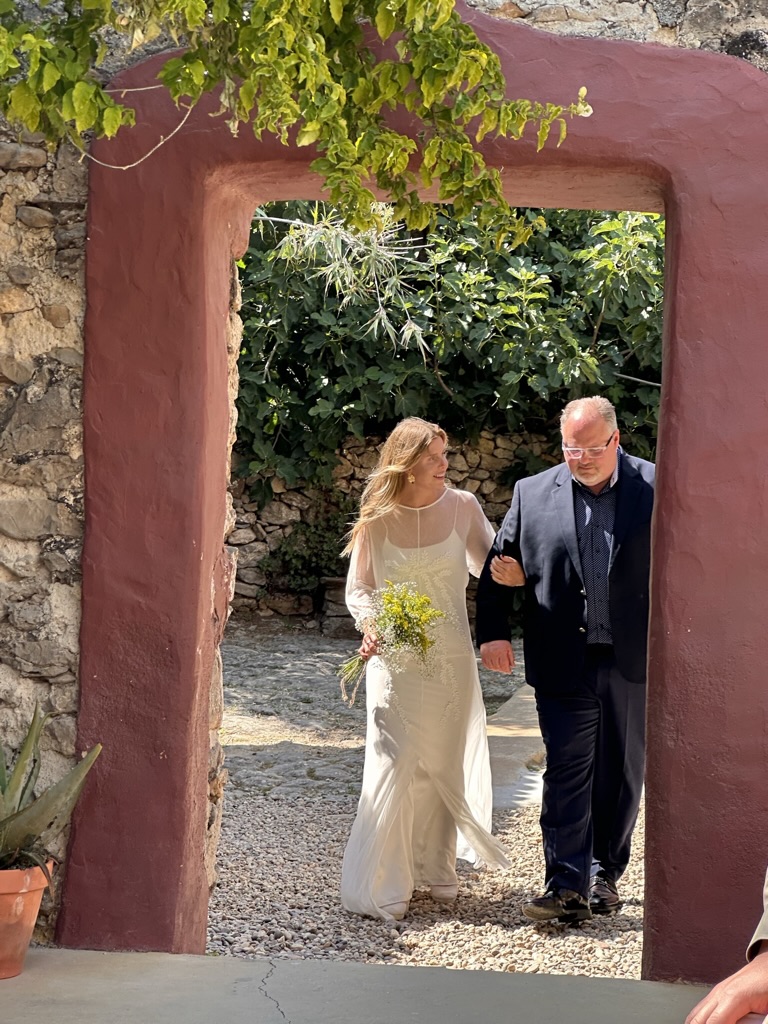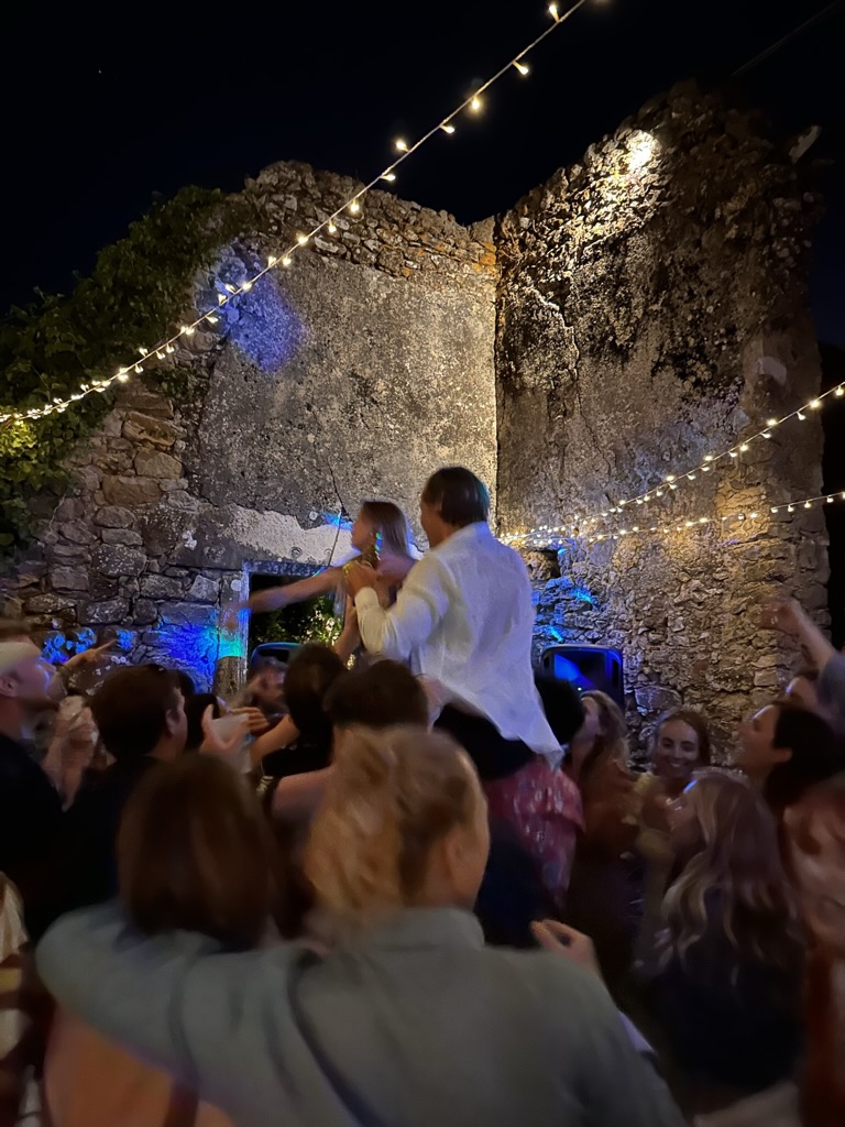 In a short bit. we were all called into the room where the wedding would be.. I say “room” .. but it was actually a many hundred year old runoi of a monestary that had long said goodbye to its roof :-).. We all sat down and waited.. The weather and setting were truly perfect !