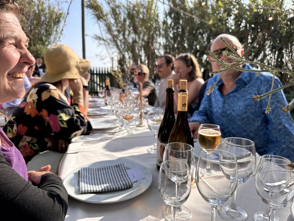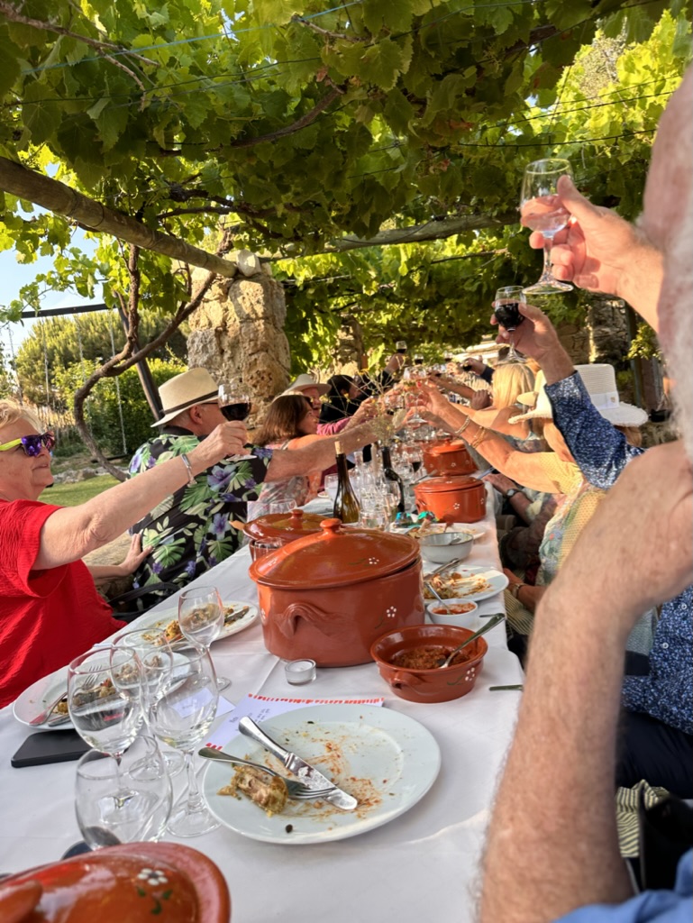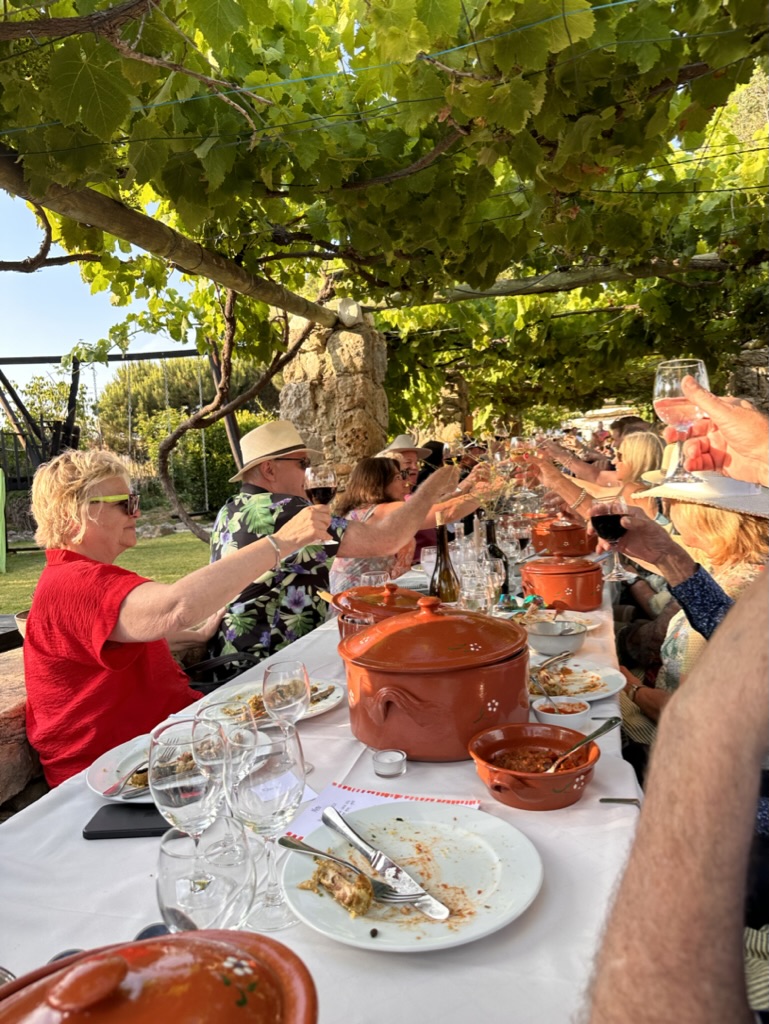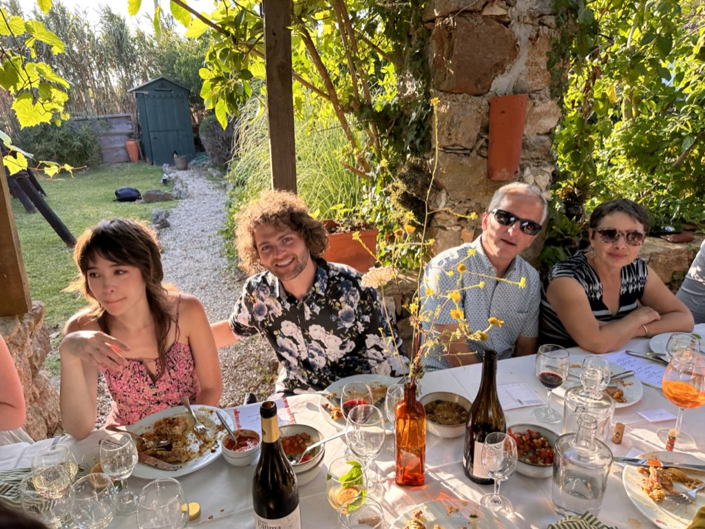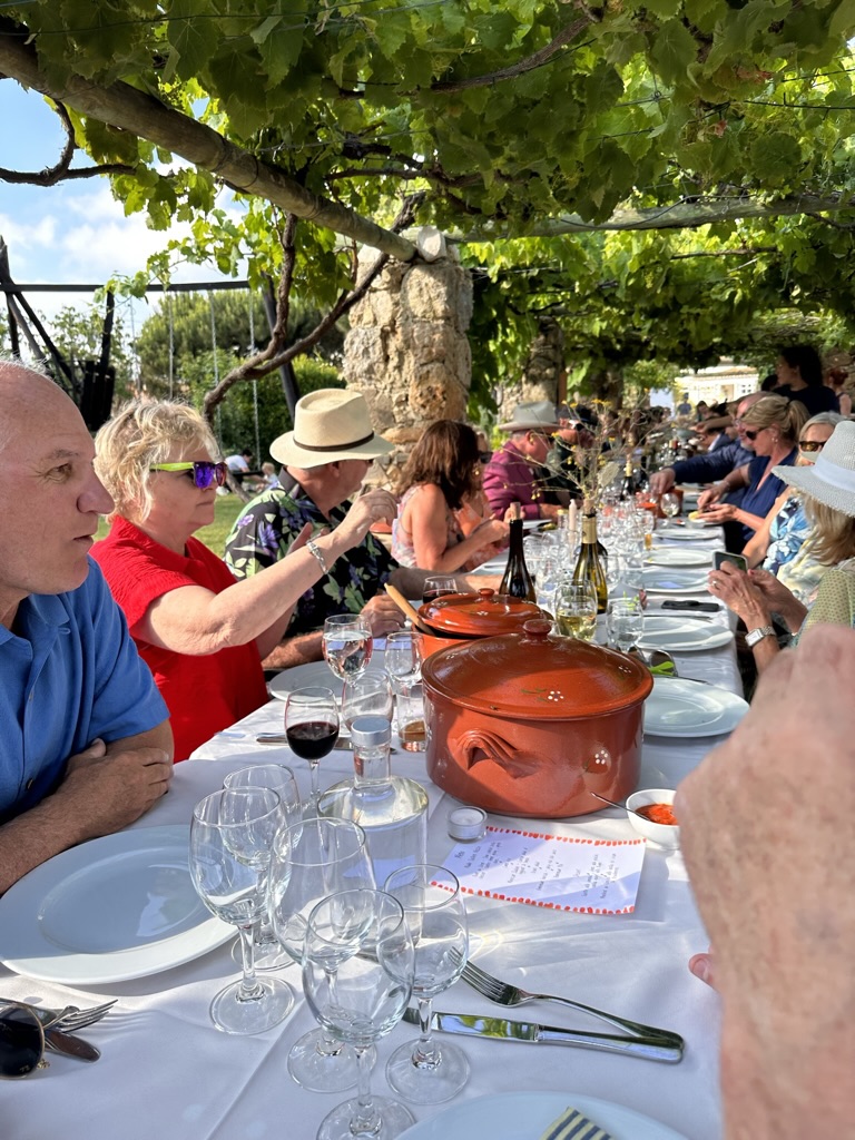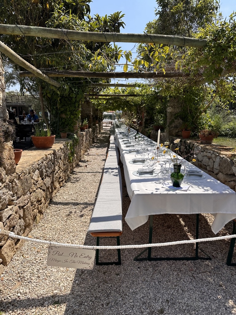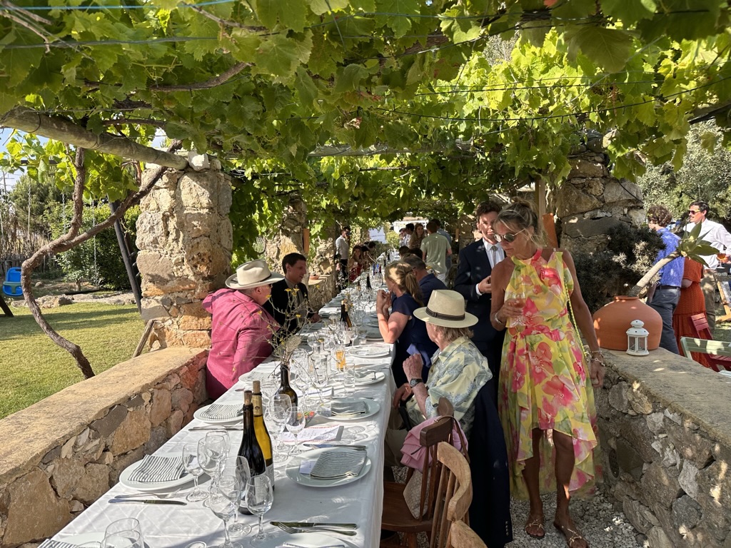 then it was time to eat ! WHat a wonderful setting.. one very long table under a grape arbor