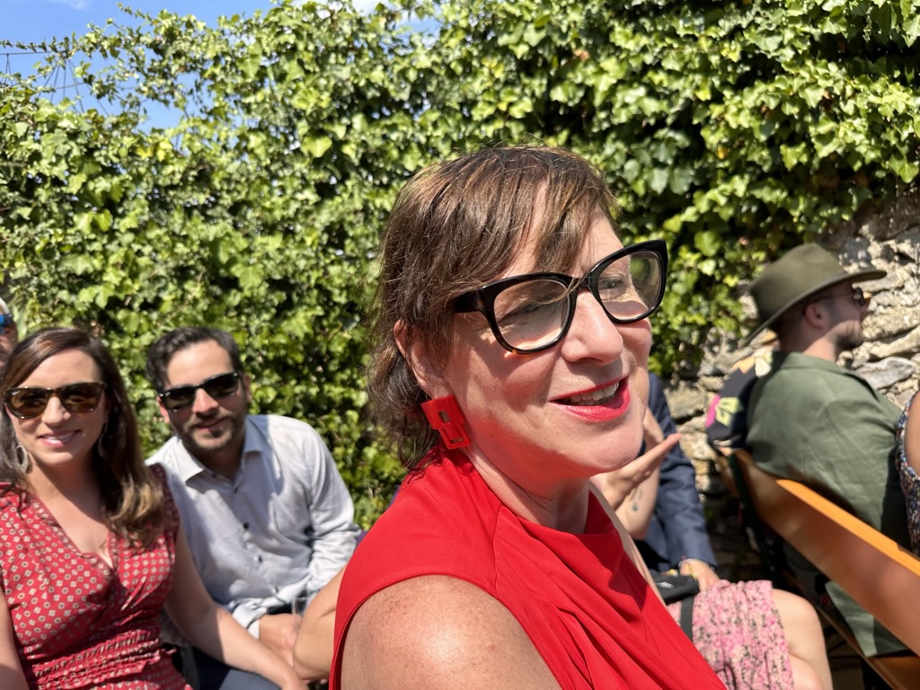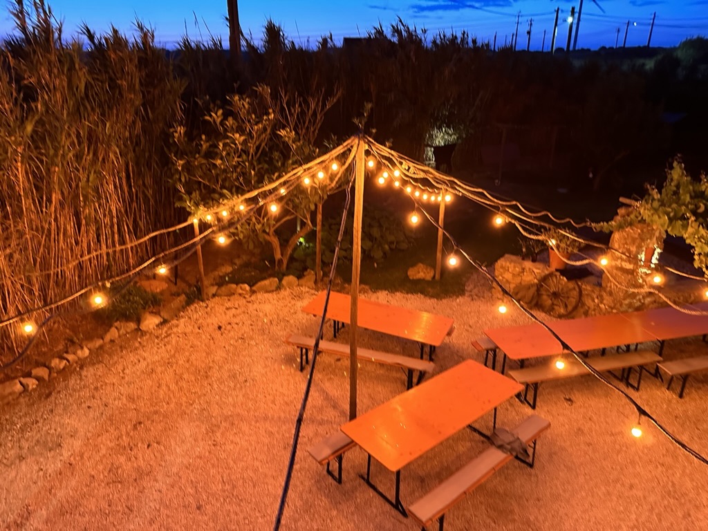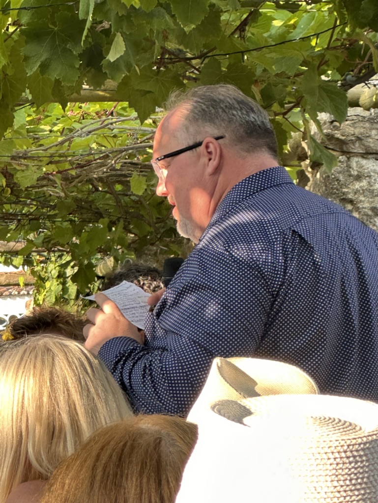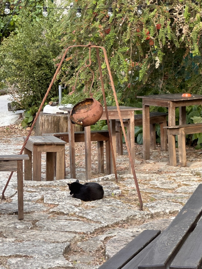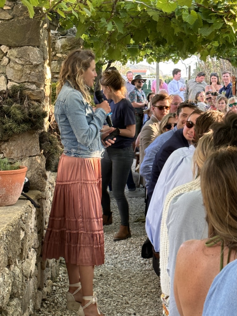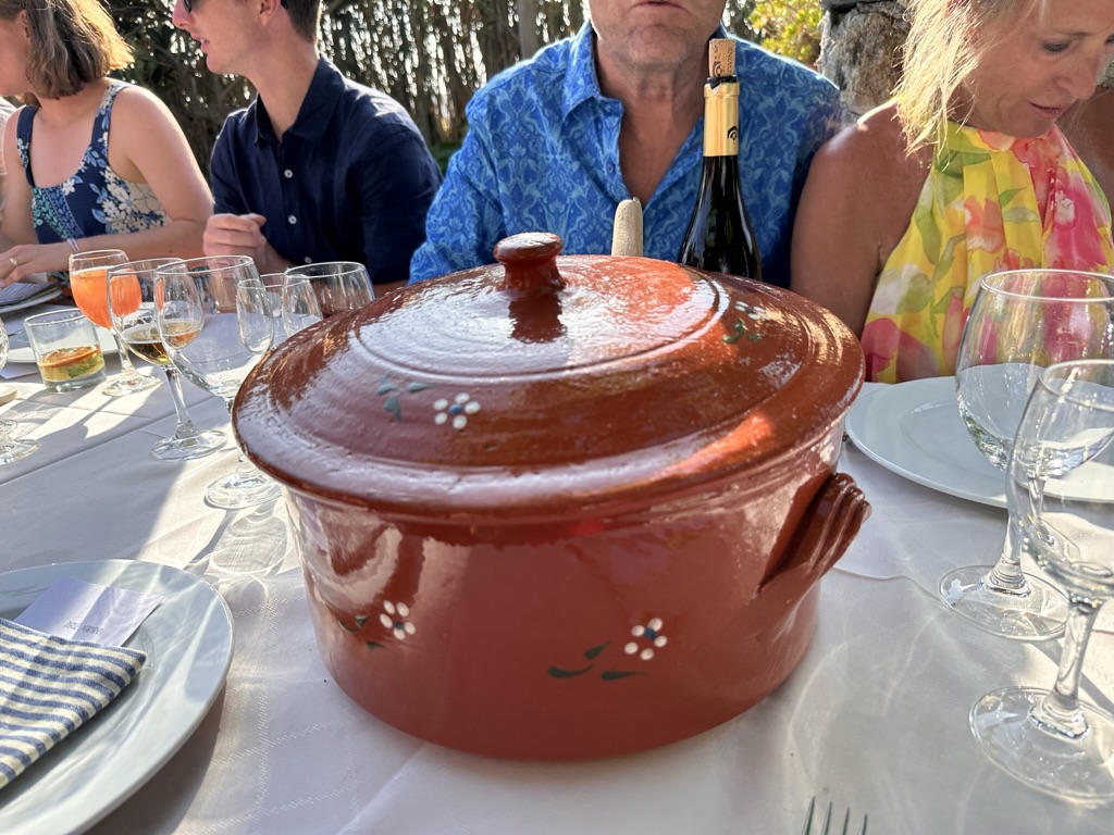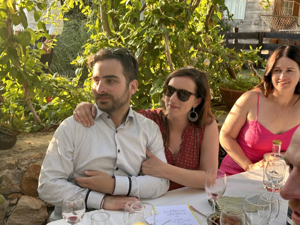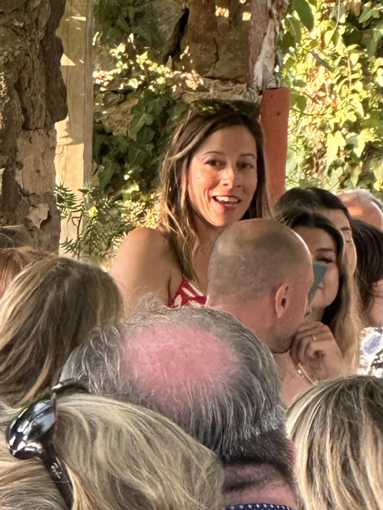 then it was time to eat ! WHat a wonderful setting.. one very long table under a grape arbor