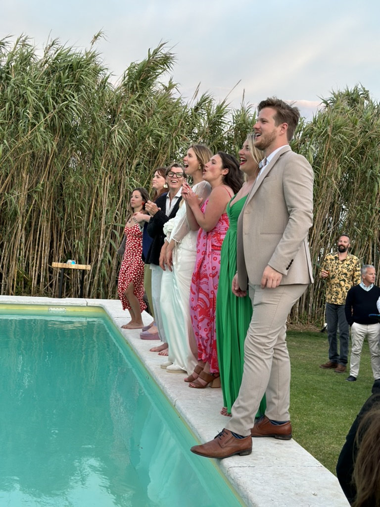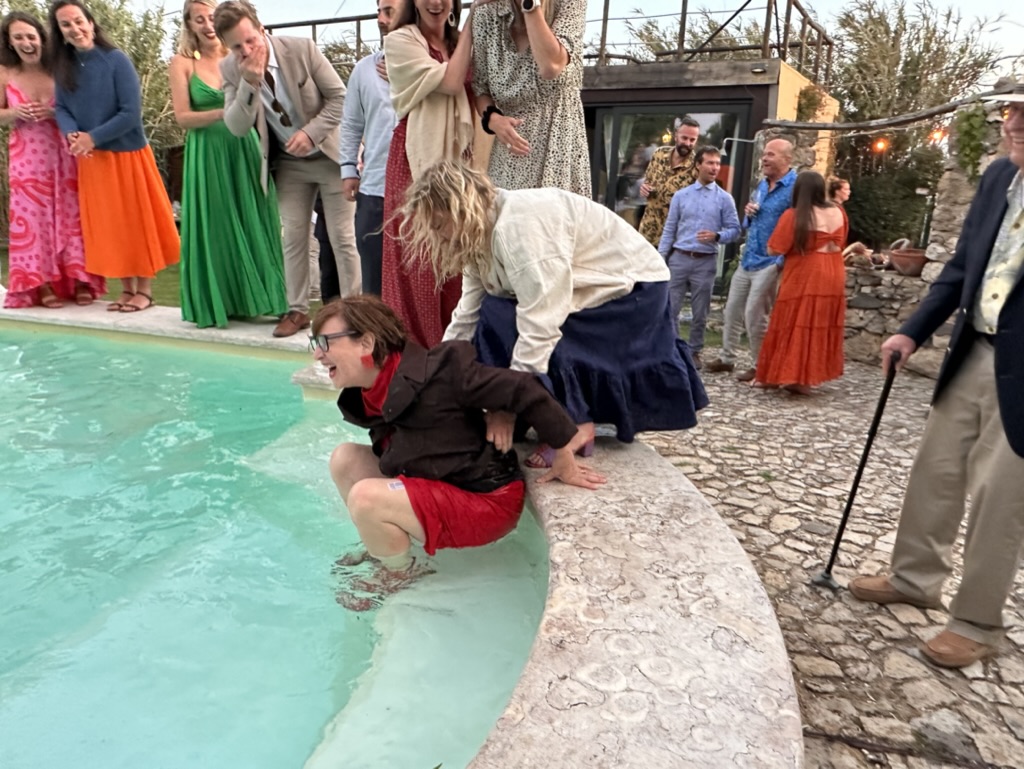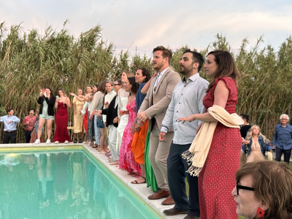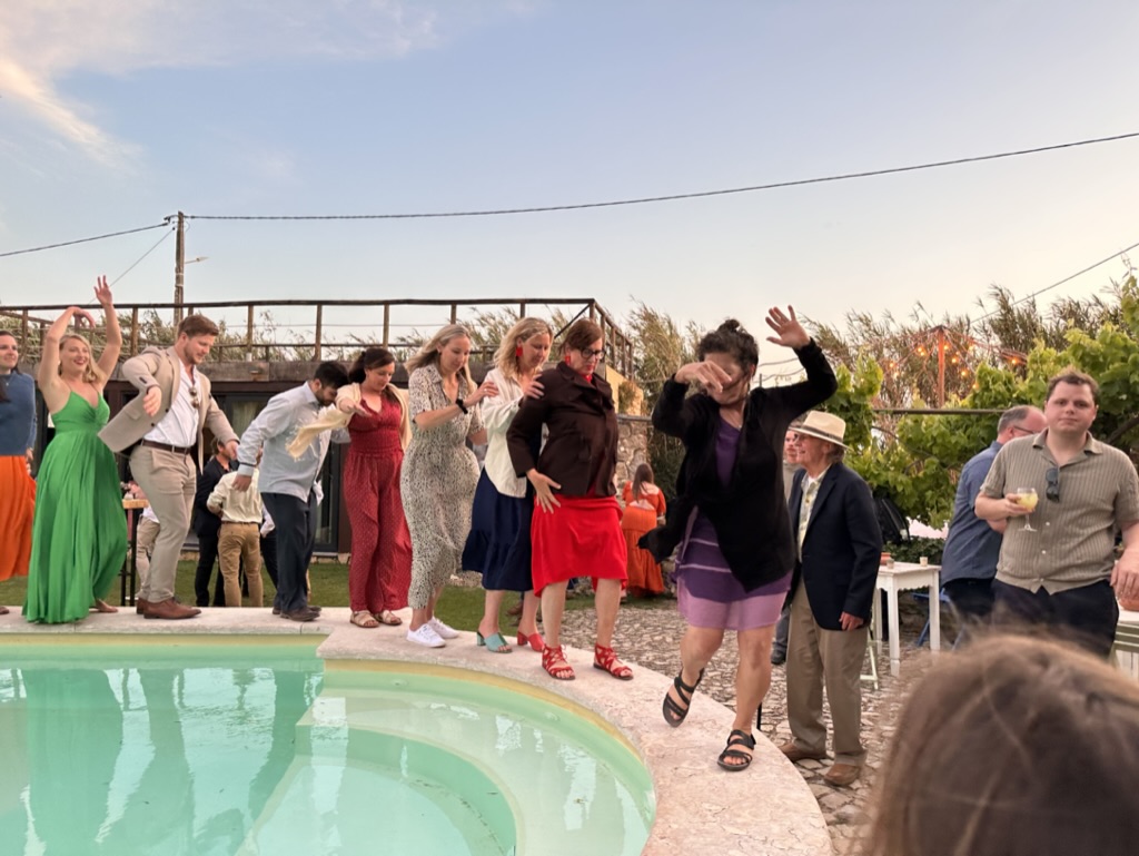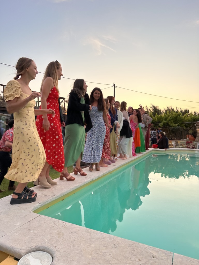 folks were dancing on the edge of the pool !