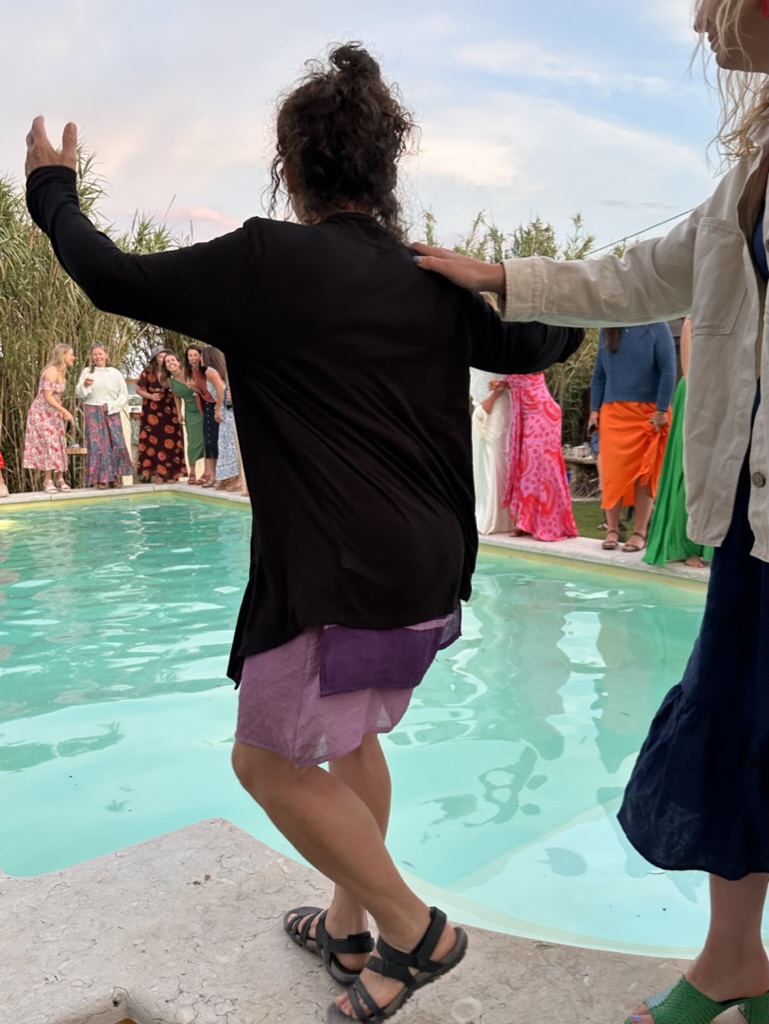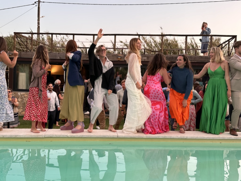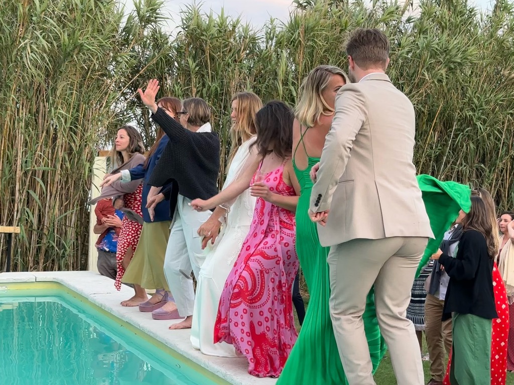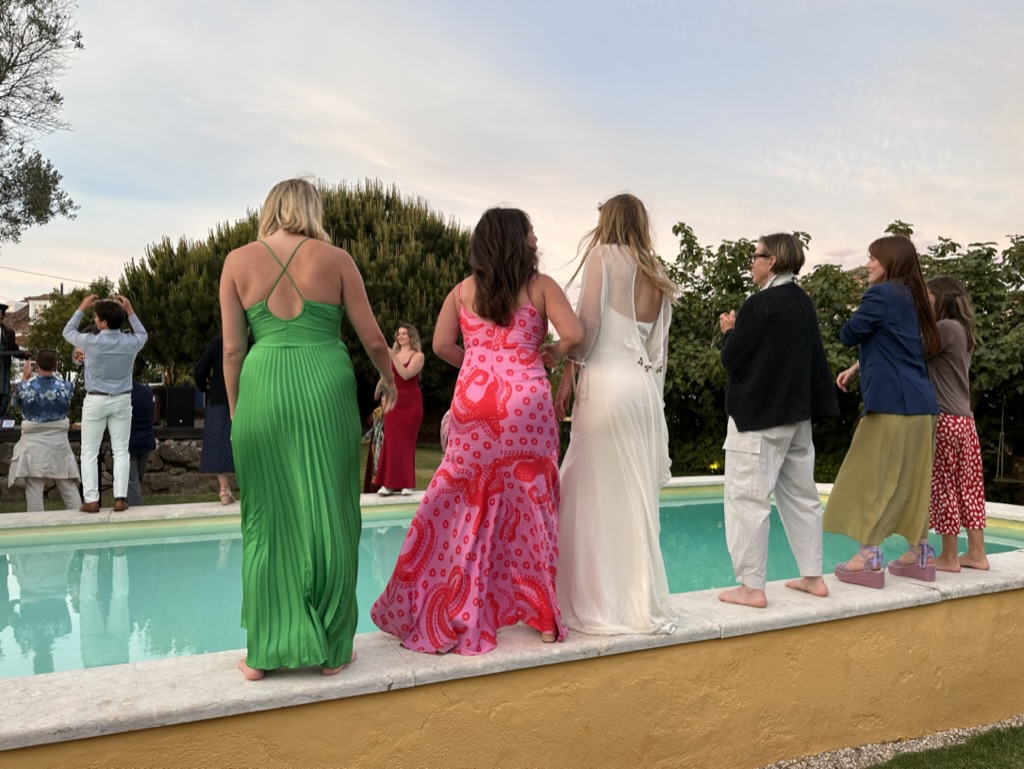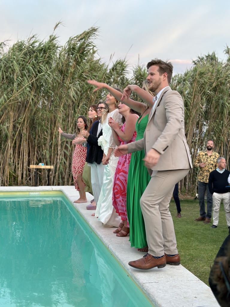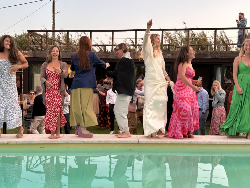 folks were dancing on the edge of the pool !
