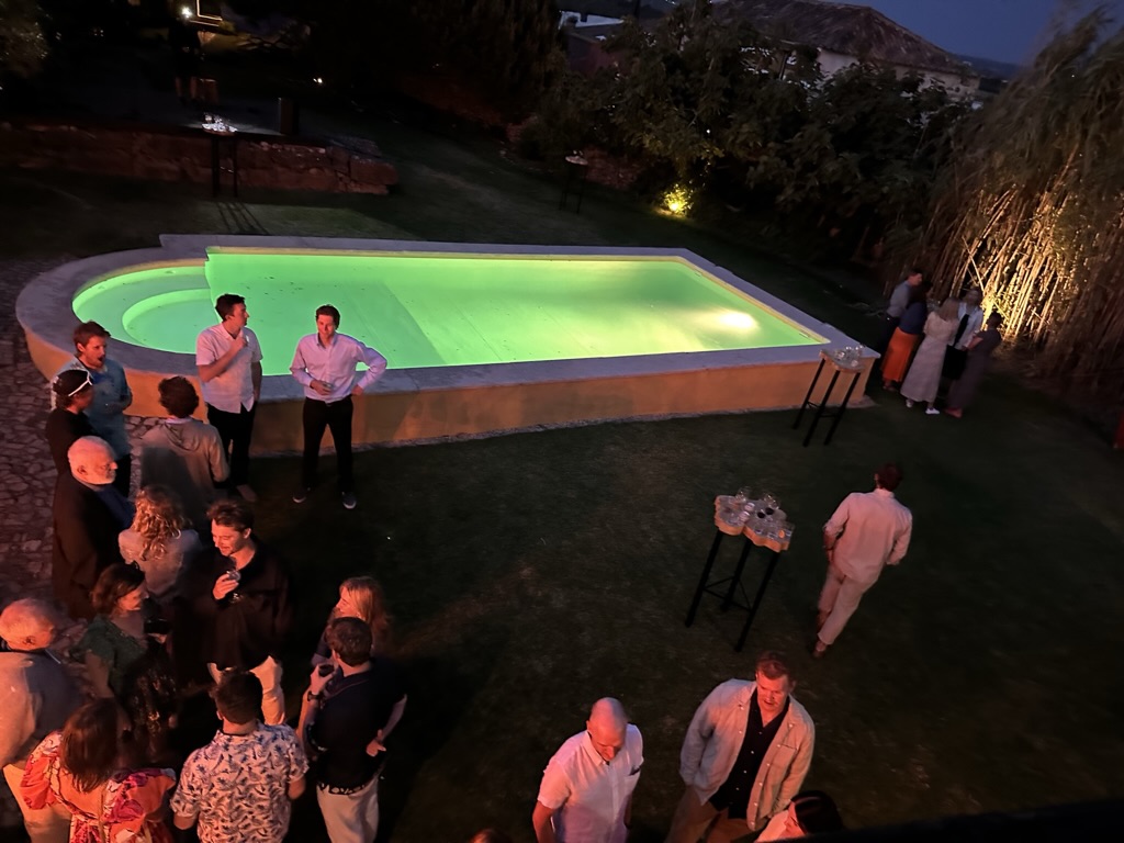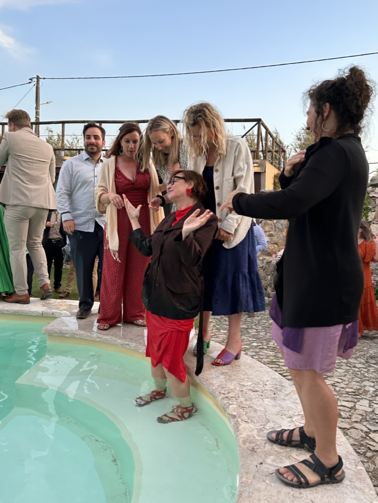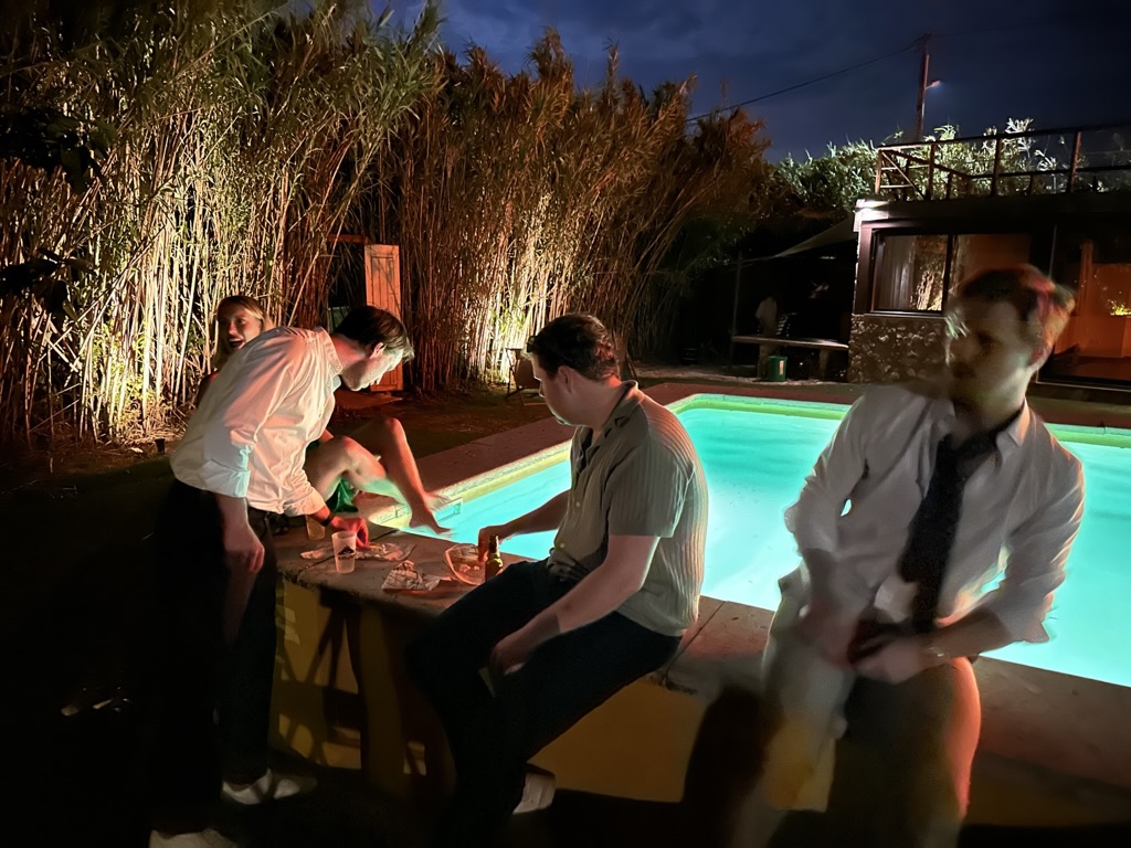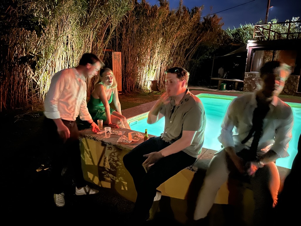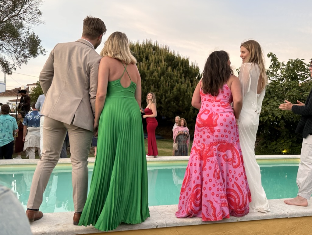 folks were dancing on the edge of the pool !