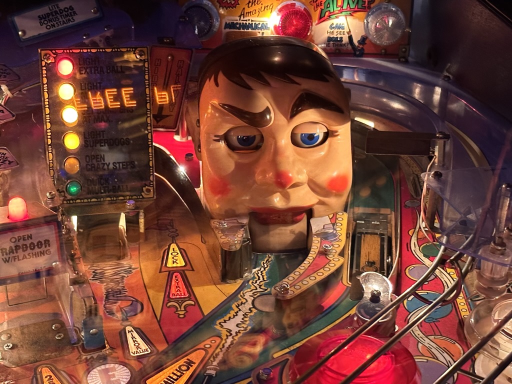 After the meeting we got a wonderful tour of Mark’s Pinball machine collection. Its absolutely amazing. He buys these things and repairs them..from the old electromechanical types tot eh modern electronic. He has a whole arcade !