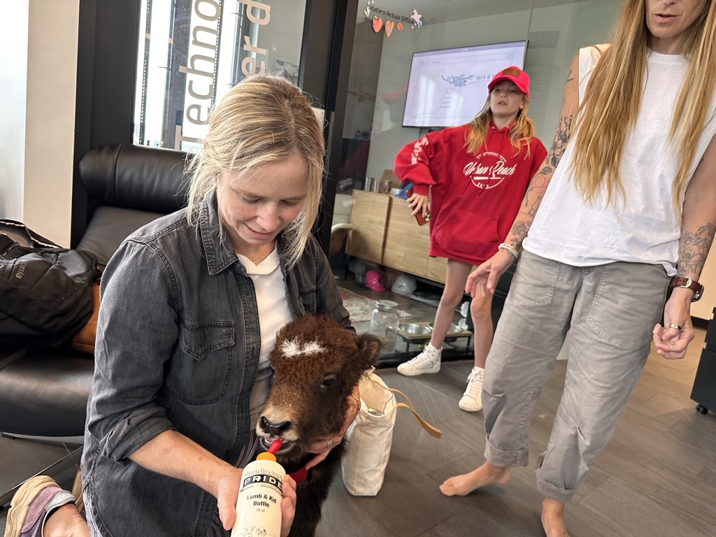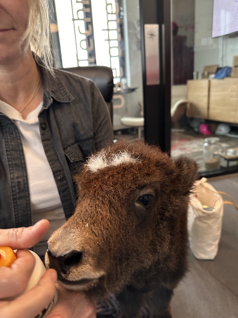 My friend and boss Katie had a surprise for us at work.. She just bought a beautiful baby Yak and brought it in to play with.> The baby was so friendly and playful..