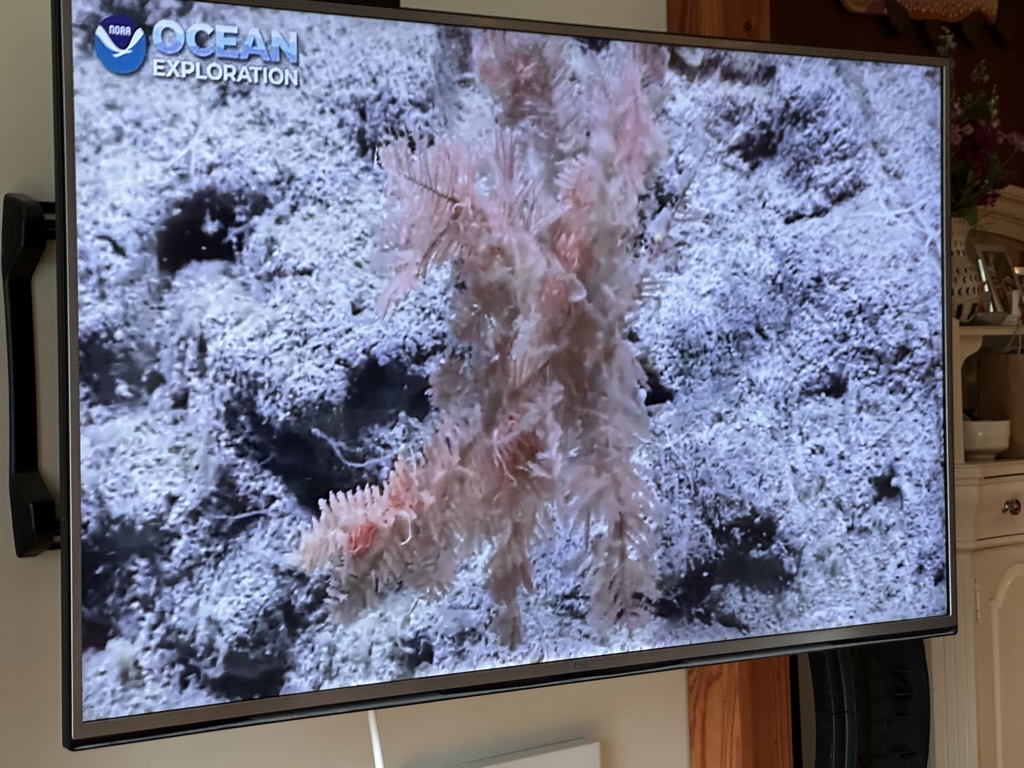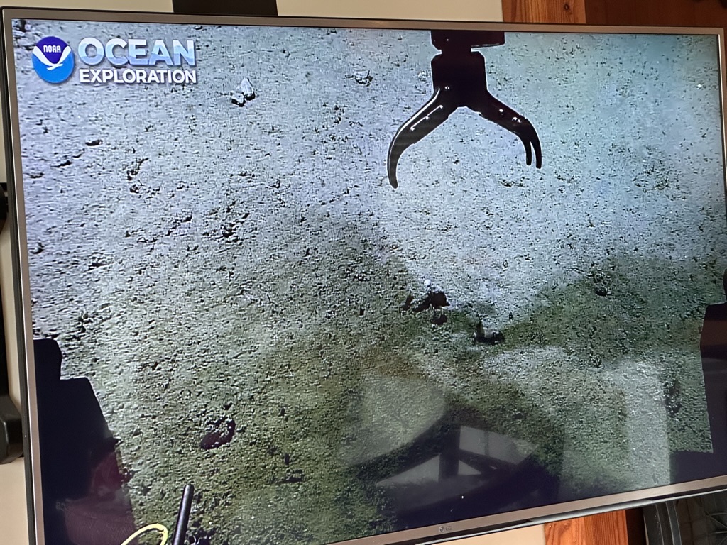 This afternoon we went op to see Tim and Jen.. They invited us to watch the live stream from the boat Nate is on in the artic. He’s the video tech for a research vessel looking at deep see geology and see life. It was really mesmerizing.. I think it like 3000 meters down… we watched them take a few specimens of rocks ysing the remote sub.. so cool !