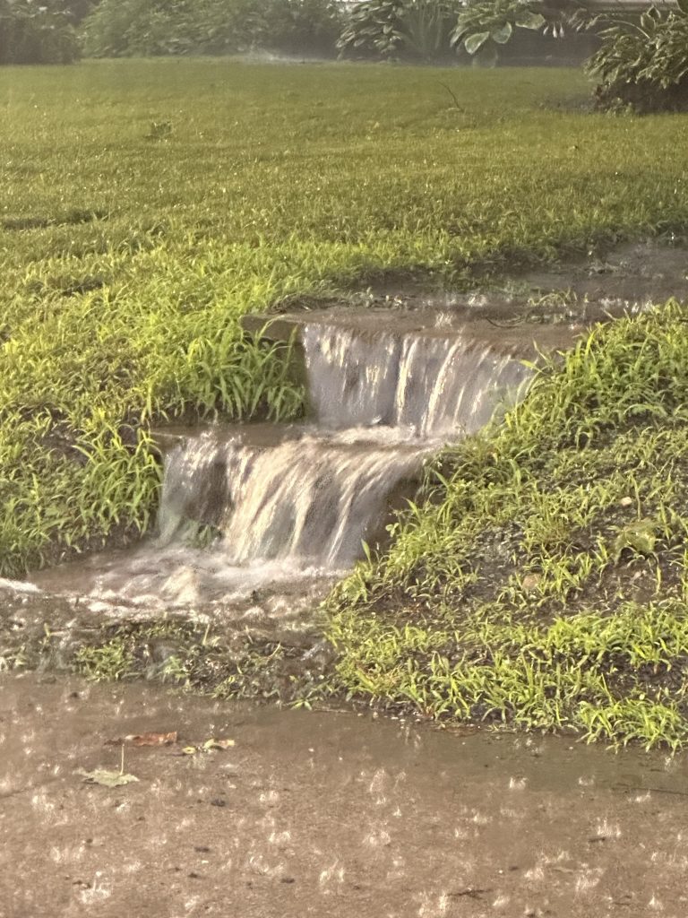 From there we went to drop off the CRV at Burlington Muffler.. .. it was about 8:30 at night.. the skies were partly sunny.. suddenly it switched to a total downpour.. As I was driving through Richmond, the streets quickly filled with water and the sidewalks became waterfalls !