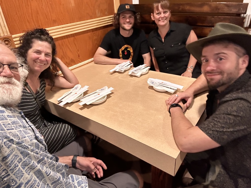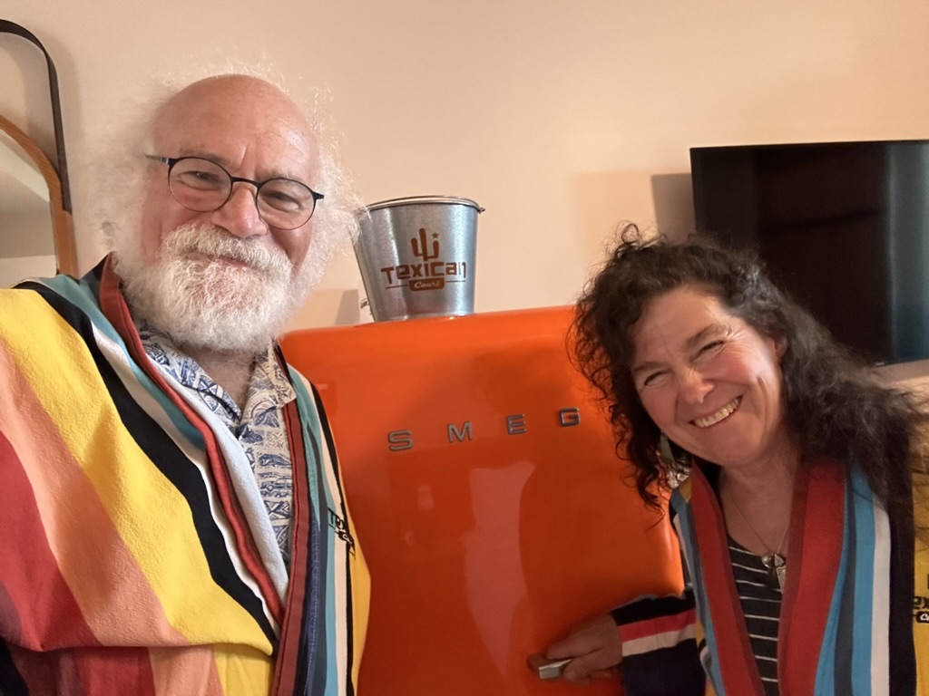 DIane and I left early for our flight to dallas. Max, Becky . Gabe . Diane and I are all l meetign down there to see the opening of the new MeowWolf in Grapevine Tx.. Max has some big pieces in the venue. Cant wait to see them ! Becky found us a very cool hotel.. nice hanging out…