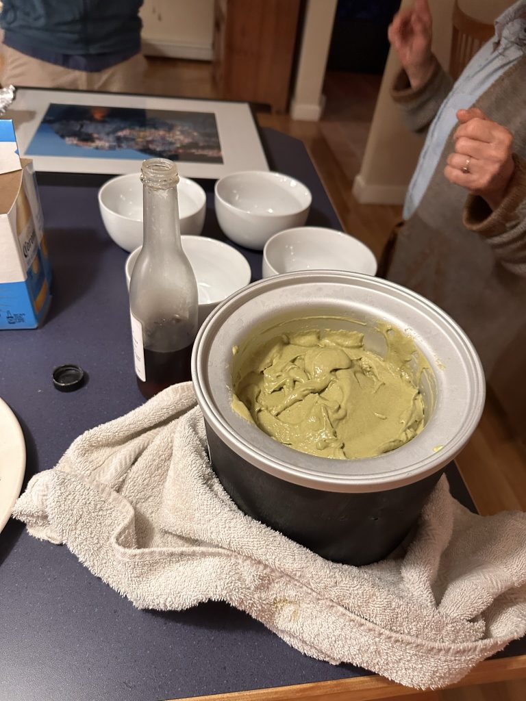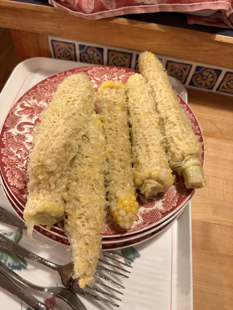Tonight we had dinner with Lou and Kathy.. ,Barbequed  Fish , Corn and Basil icec ream from us !