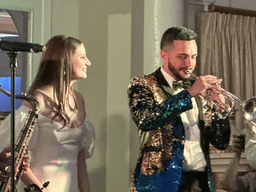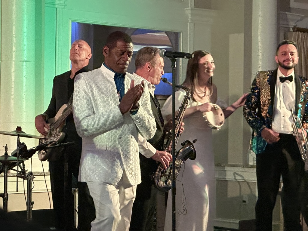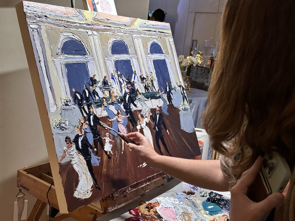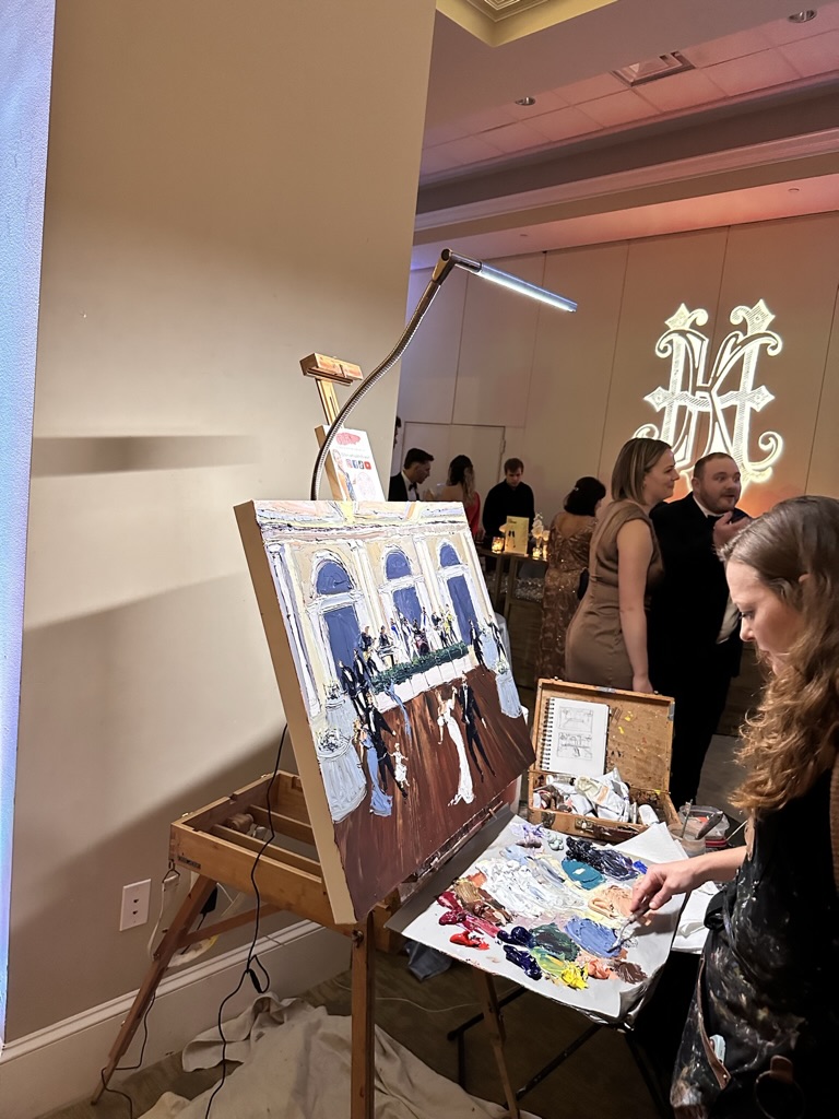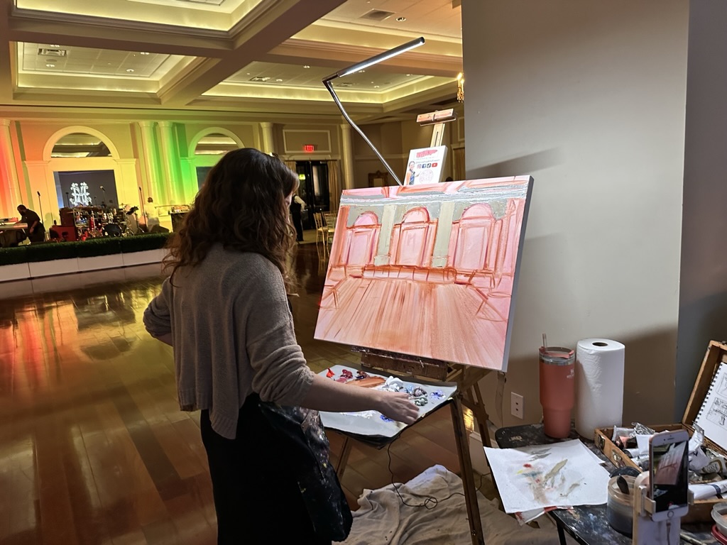 THe reception was in a really nice ballroom. Food was a great buffet.. there was an open bar and there was a very good live band. One very cool thing was that there was an artist there painitng the whole event in real time.. I’lls. show you some pictures of that in a sec