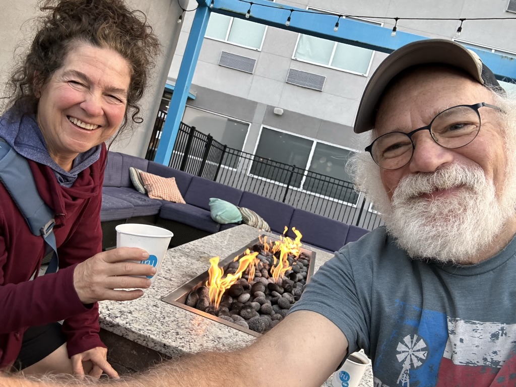 Woke up in Lafayette and it felt like a differnt plant. It was in the 40s and rainy when we left Vermont. This morning is was in the low 70’s and clear. The folks in the hotel thought that was cold, so they startted the firepit for us 🙂
