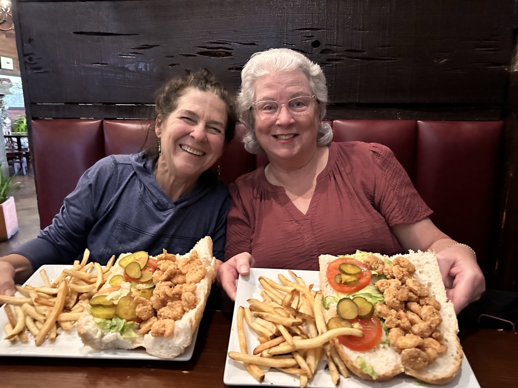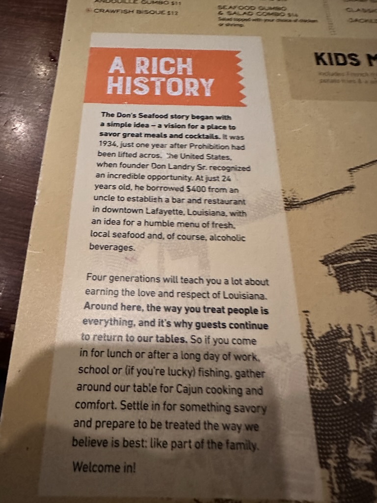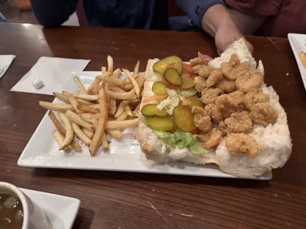 Around 11:30 Leslie and Brett picked us up .. we wnated to get soem good cajun food. When we were little we’d soemtims stop at Lake Charles at a place called Don’s .. they had one here in Lafayette… so thats where we headed. It was a great choice !. DIane had a shrimp po-boy and I had crawdad ettouffe .. It brought back great memories !