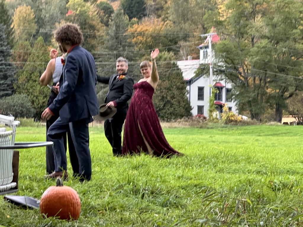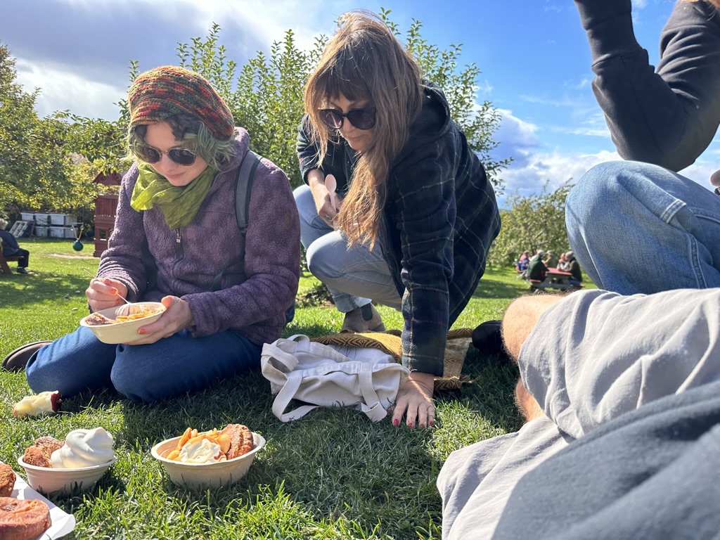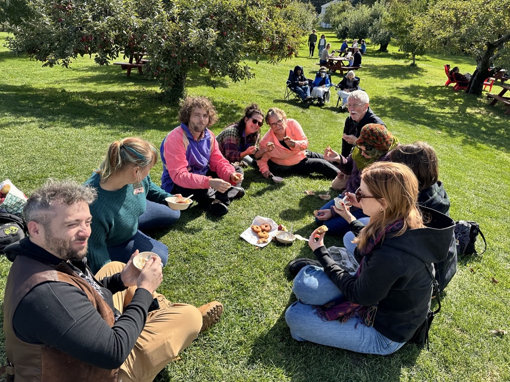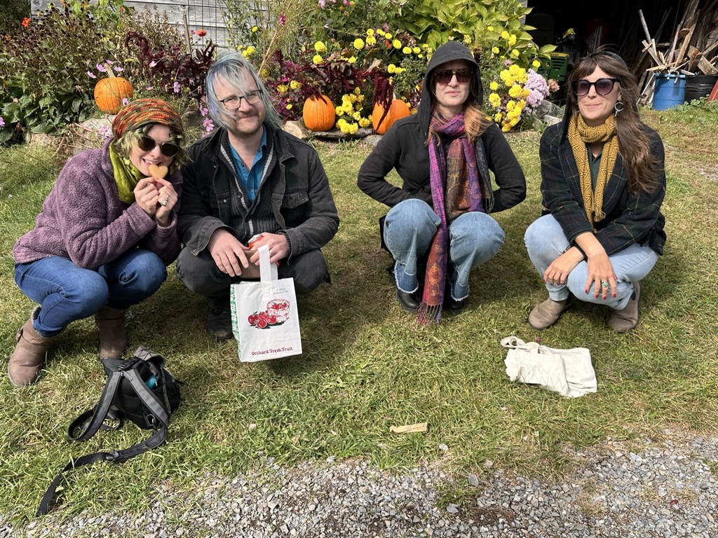 We finally wrangled everyoen into cars to go look at some of the beautiful scenery this time of year. Your original thought was to go up route 100 and over smugglers notch… But we figured that would be full of too many tourists so instead, we headed over towards Monkton to go get fresh cider donuts and dreamies at Yates. Dreamies are fresh cider donuts with maple, soft, serve ice cream, covered with maple syrup… You only need one per year 🙂 it was such a beautiful day.. No sign at all that we got almost 2 inches of rain the day before.