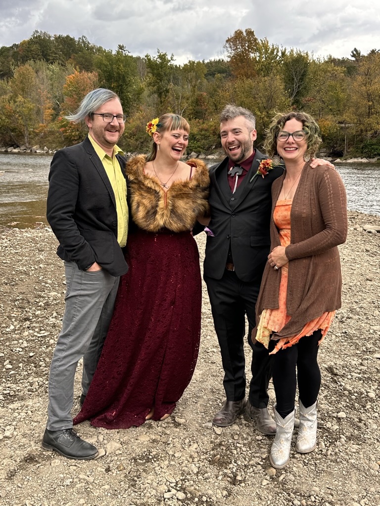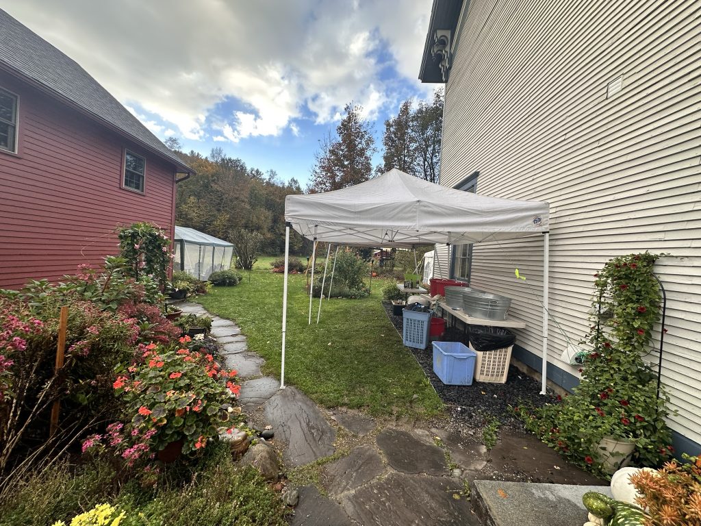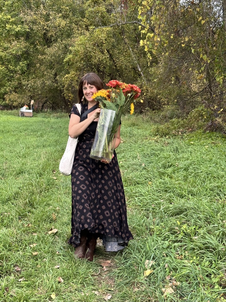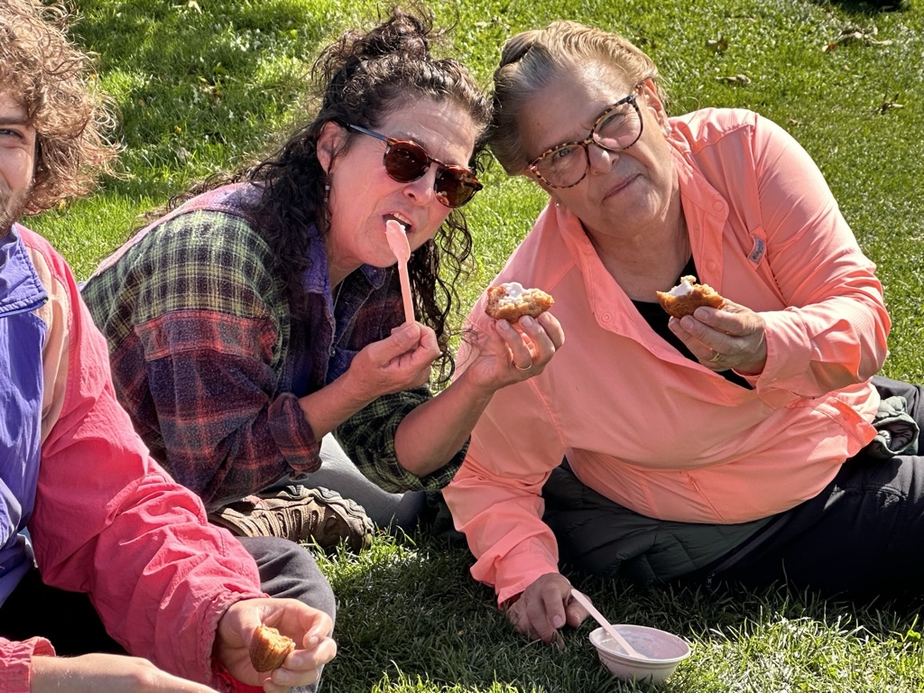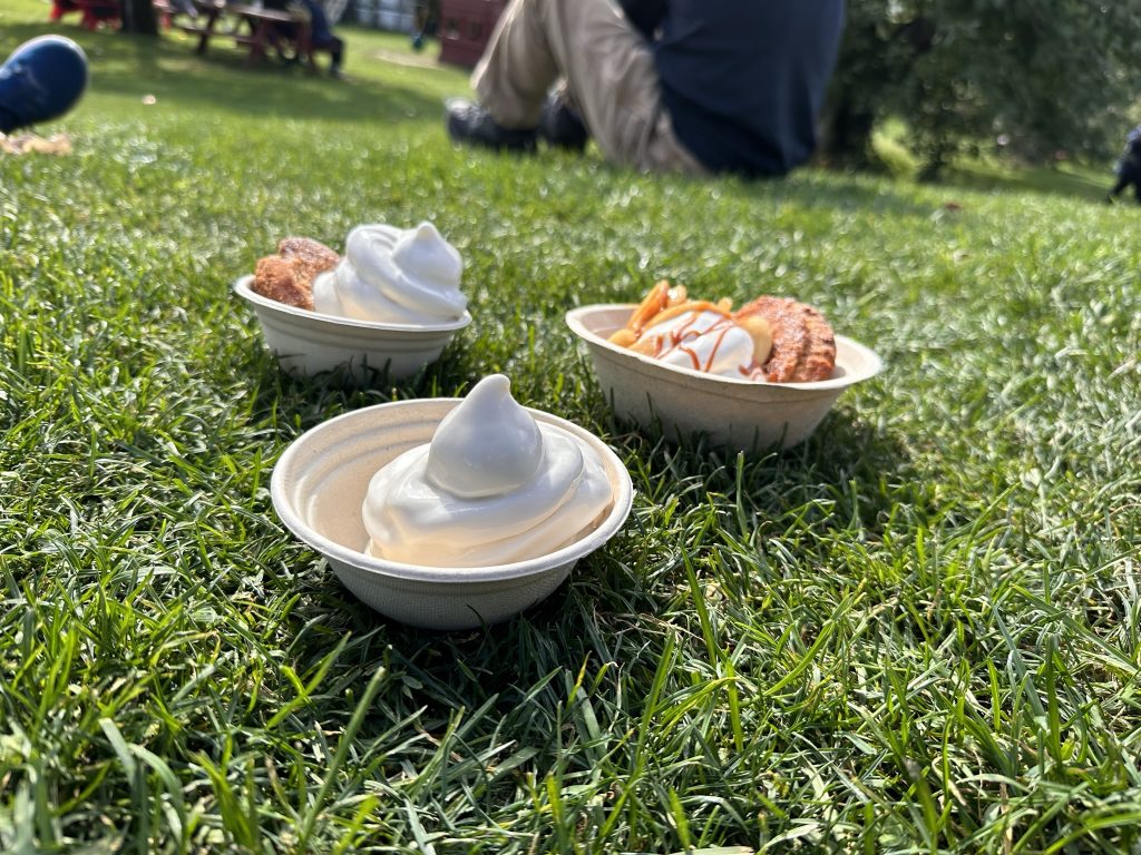 We finally wrangled everyoen into cars to go look at some of the beautiful scenery this time of year. Your original thought was to go up route 100 and over smugglers notch… But we figured that would be full of too many tourists so instead, we headed over towards Monkton to go get fresh cider donuts and dreamies at Yates. Dreamies are fresh cider donuts with maple, soft, serve ice cream, covered with maple syrup… You only need one per year 🙂 it was such a beautiful day.. No sign at all that we got almost 2 inches of rain the day before.