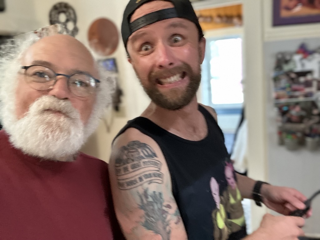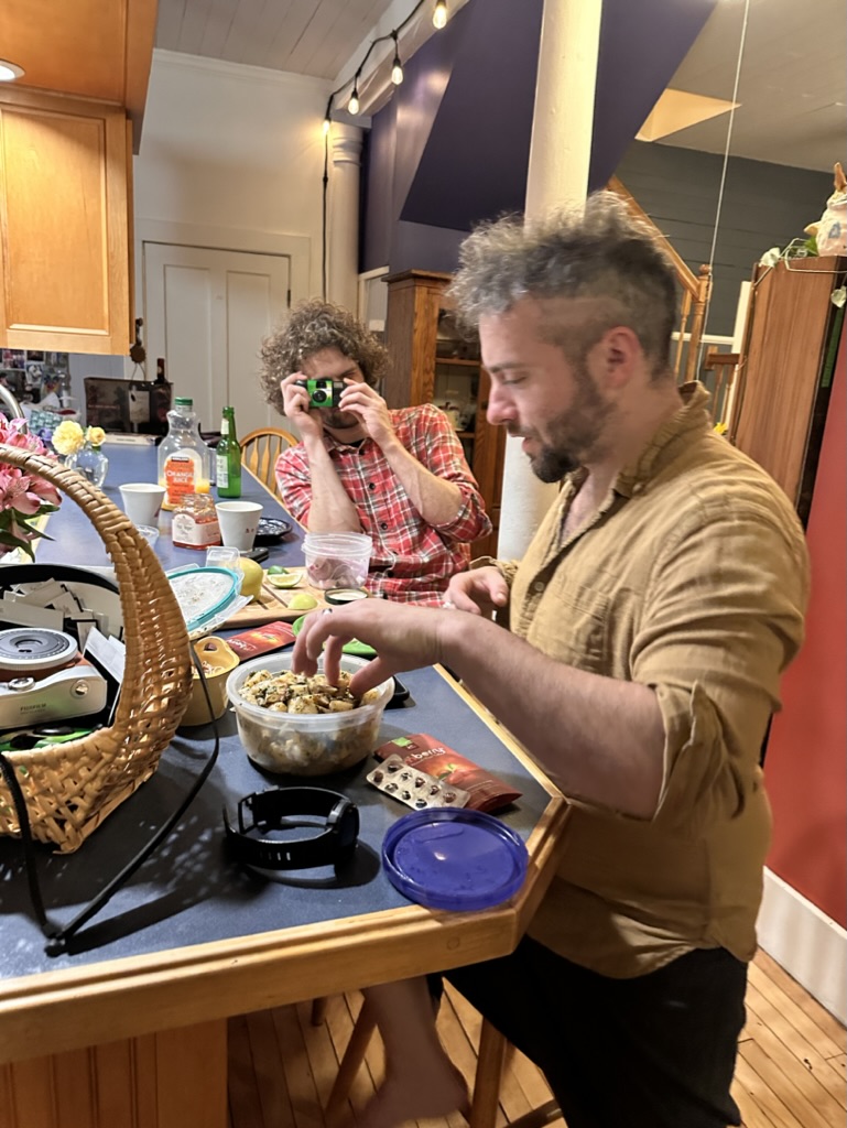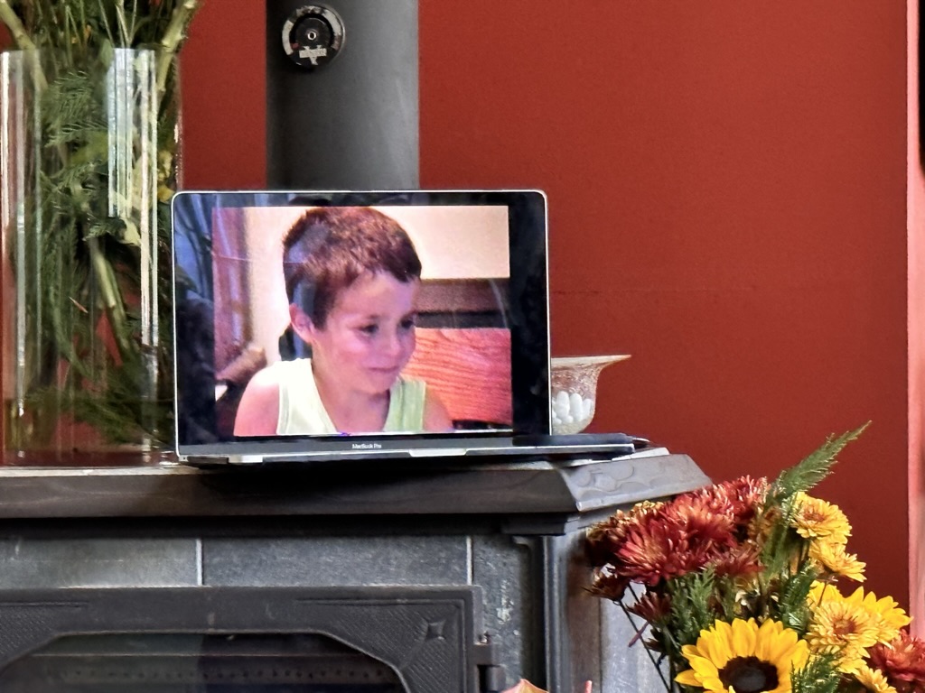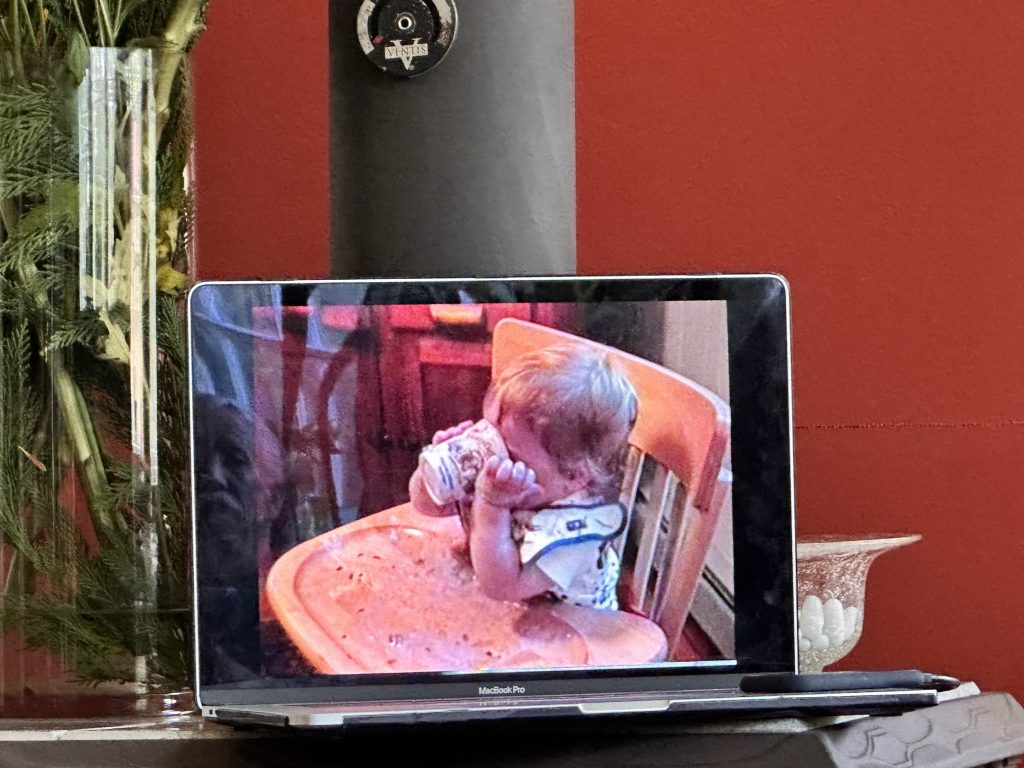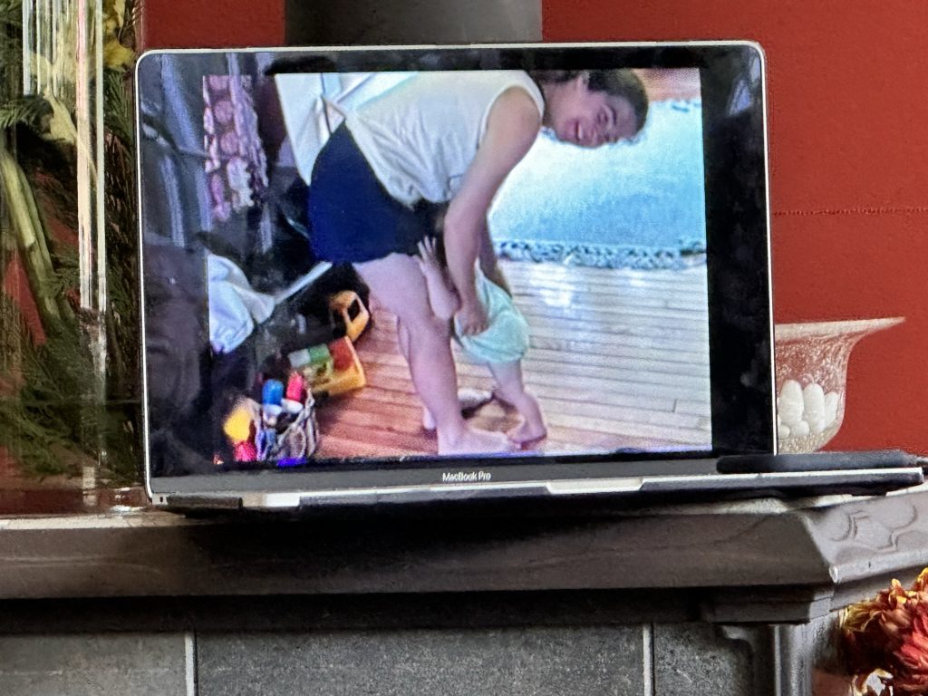 When gabe came downstairs he brought with him. Some meticulously made notes about some of the videos that we had digitized a couple of years ago. We spent a nice hour, looking at the pass… Seen ourselves our house, our kids, and of course a lot of Sam. Lots of laughter couple of tears.