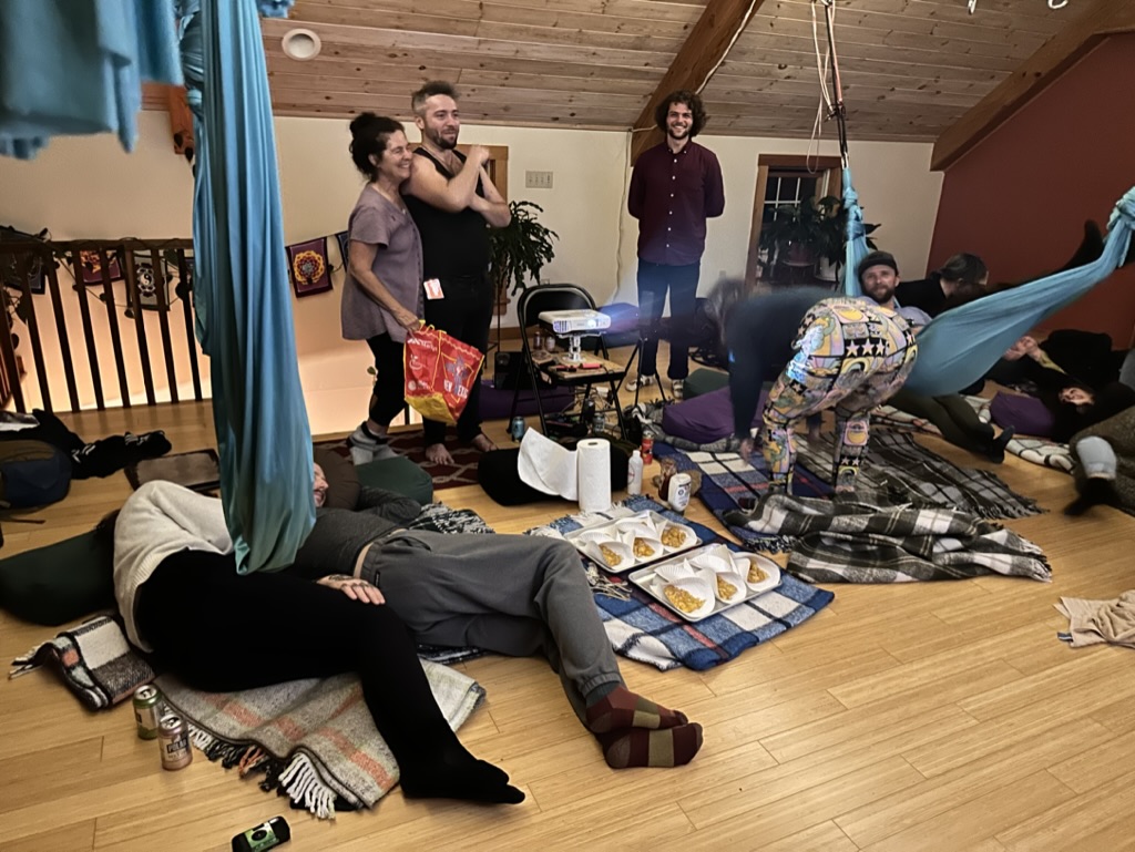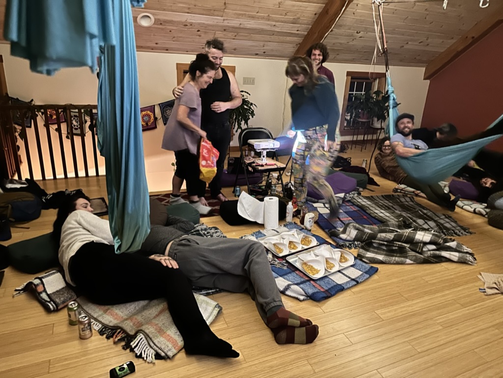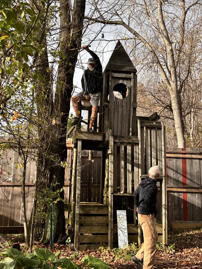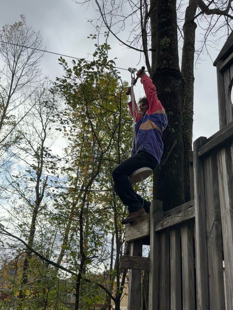 we all moseyed (do we ever mosey ?) back t the zip line which is behind Chris and ‘Kim’s fire performance stage… The zip lines been there forever. We all take turns going on it so sketchy and so fun !.