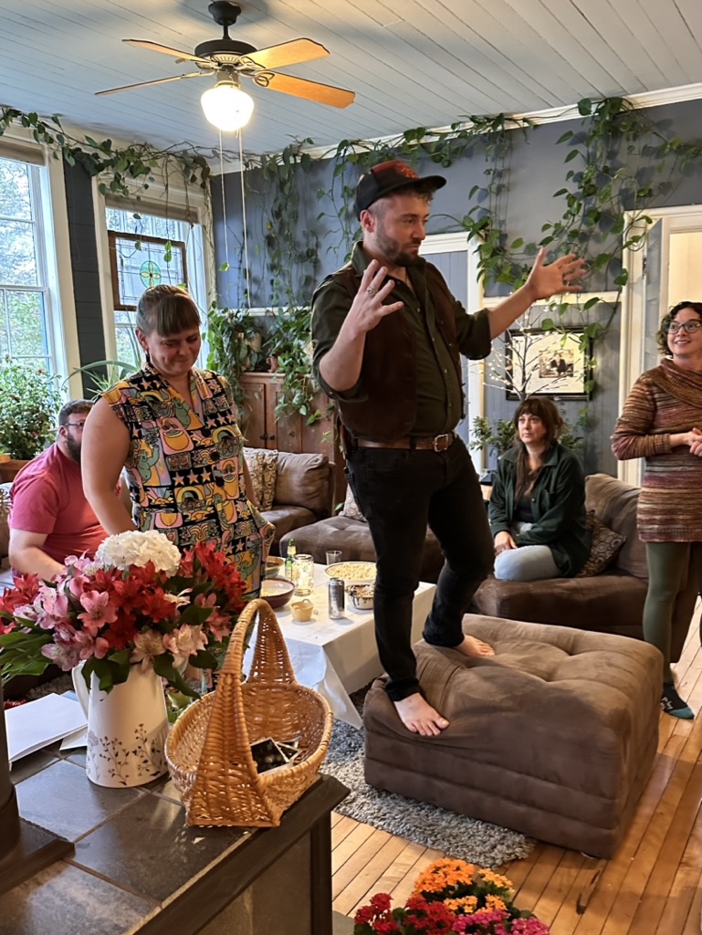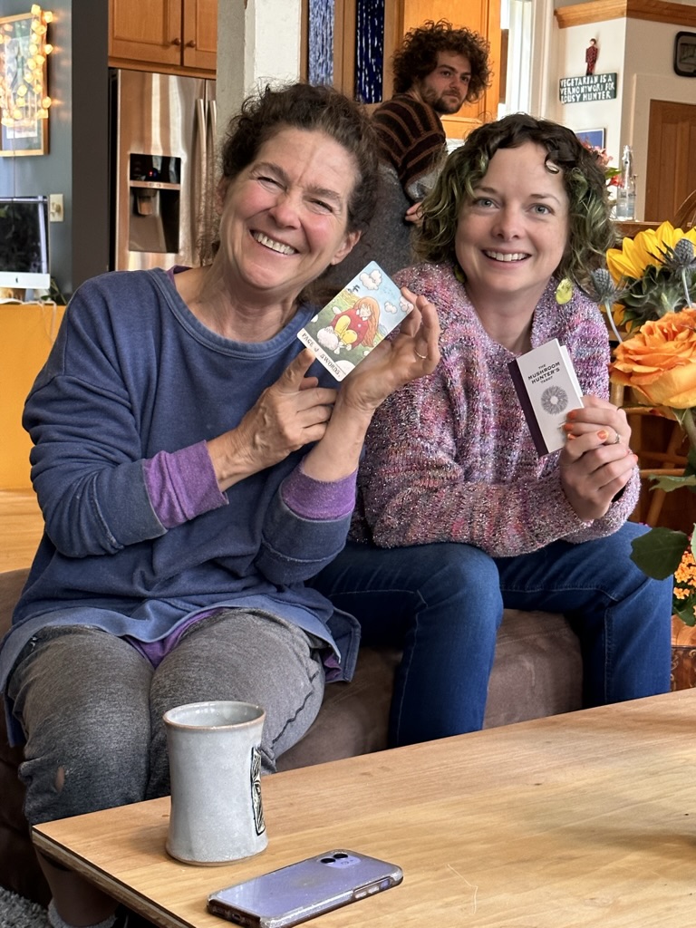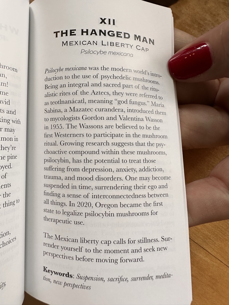 Somone found a pack f mushroom themed tarot cards so we all read ours.. I dont remember mine.. but it was a good one ! Oh yes.. it was “the hnged man” .. sounded bad.. but it’s ctually pretty good .. see below