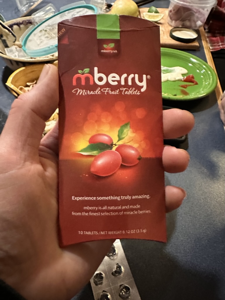 Then another great meal.. this one with magic flavor changing berries ! After dissolving them in your mouth, they make everything sour taste, delicious the suite for about 15 minutes. We took turns eating all sorts of things vinegar, cream, cheese, apples, onions, lemmings… Lemons are delicious and sweet when you eat one of these