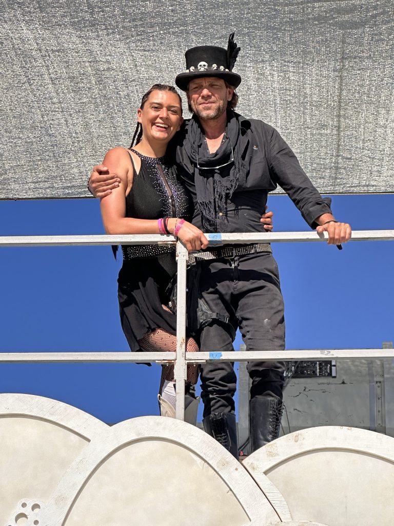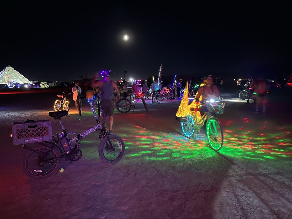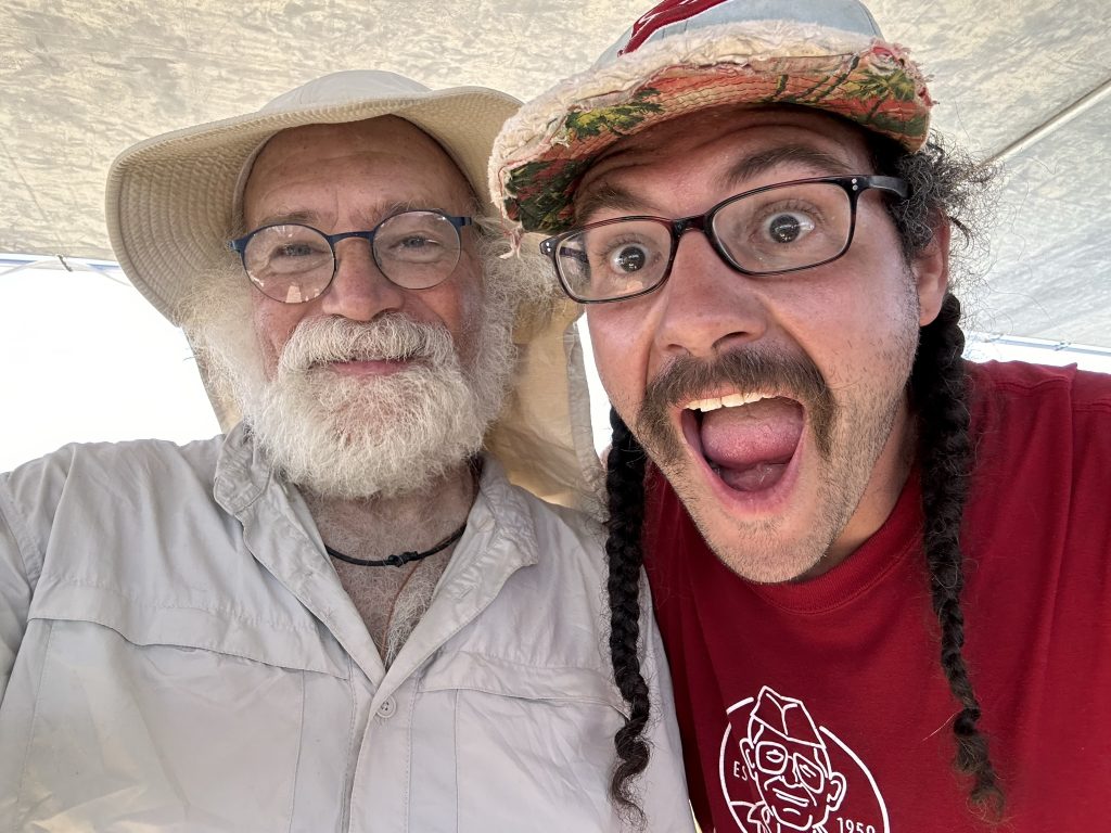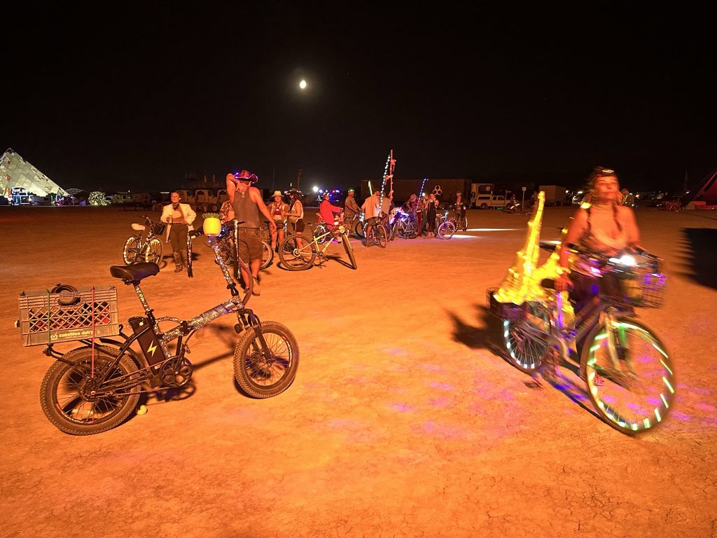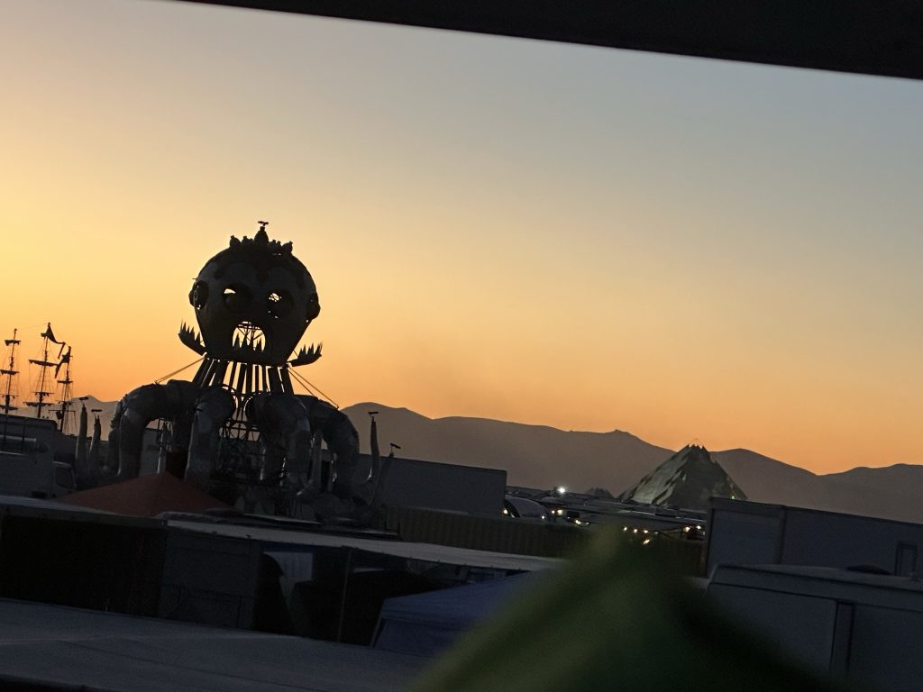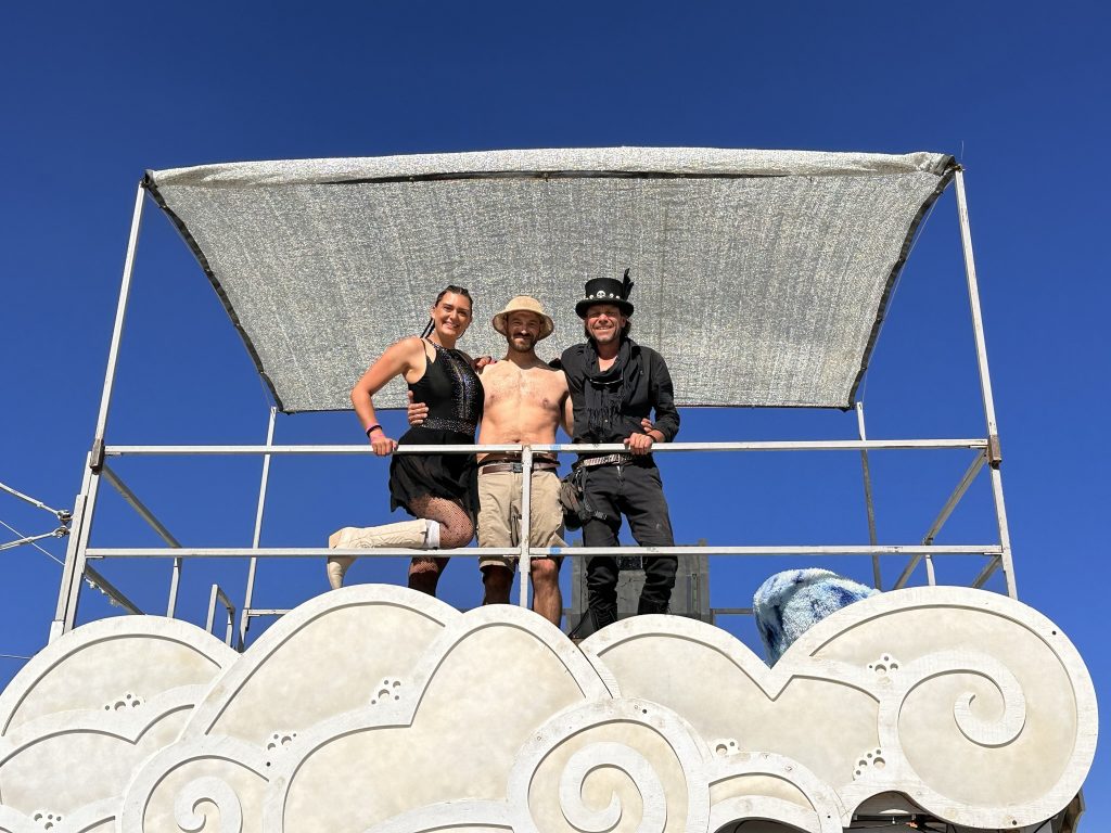 We got up, ate.. and started working. Today was the first official day of burning man week.. and most of our teammates were filtering in. So great to see all my old friends !I’d hoped to spend the day exploring the playa and finding friends. But there were a number of small problems with the fire system that needed work ..I was tryign to get a little more ‘oooomph” out of the poofer.. eventually got it working. Gizzo helped me which was fun. . I didn’t get out to explore until 3… and I had to head out at 6PM.. still had so much fun !