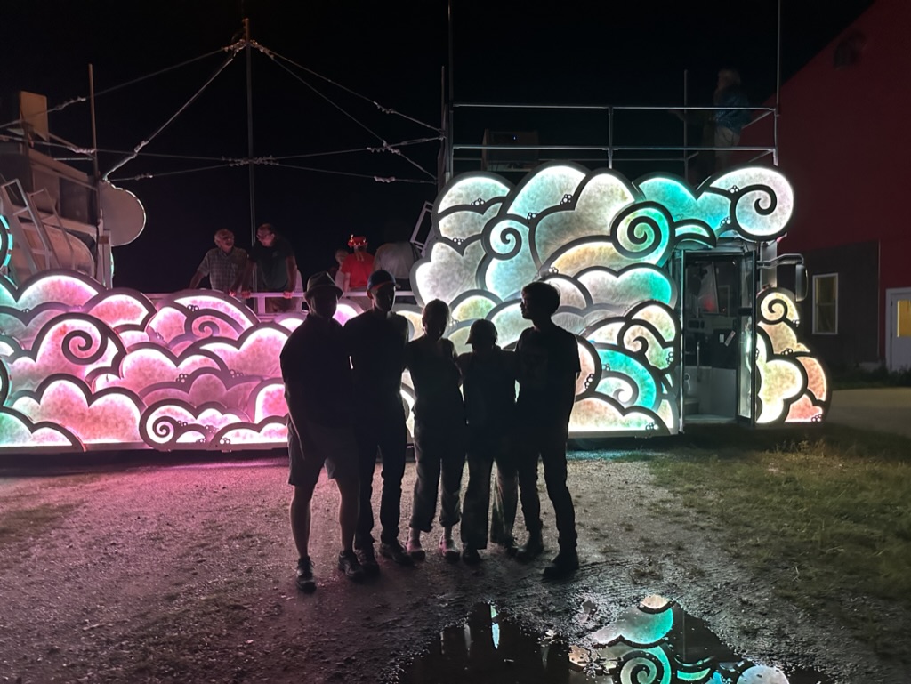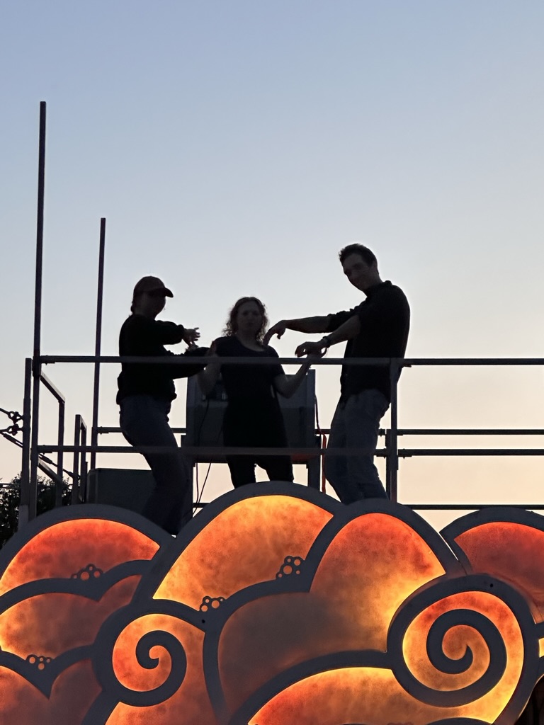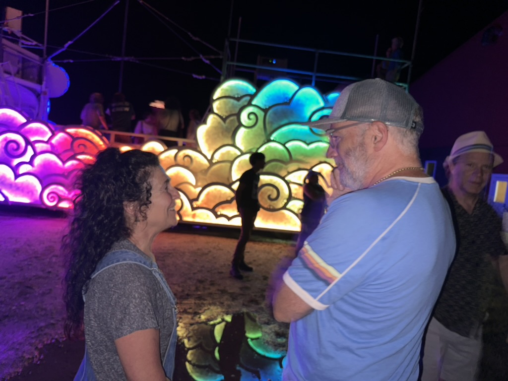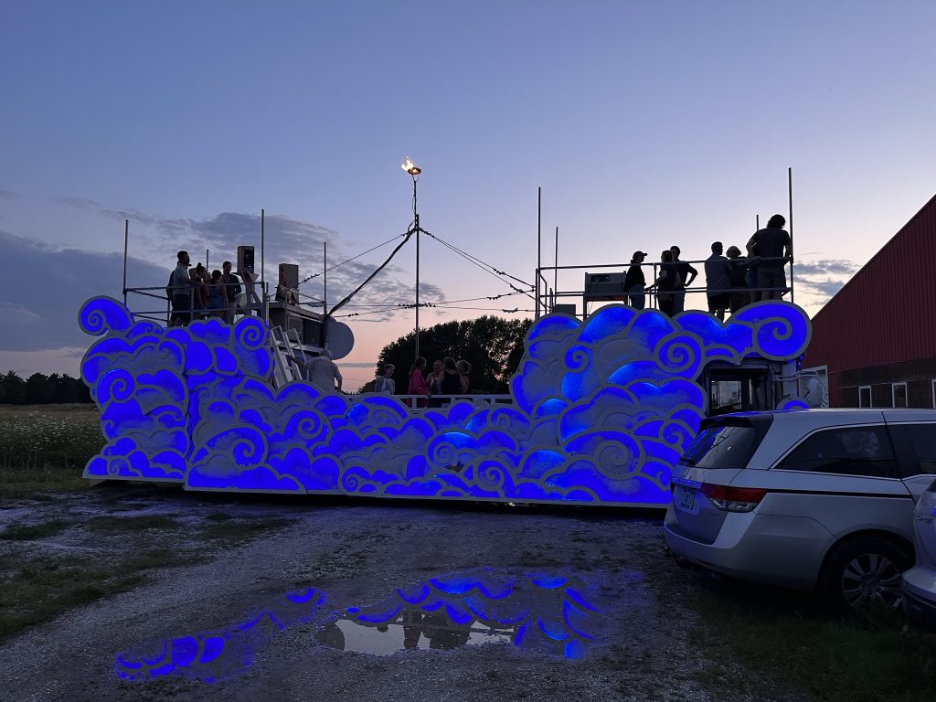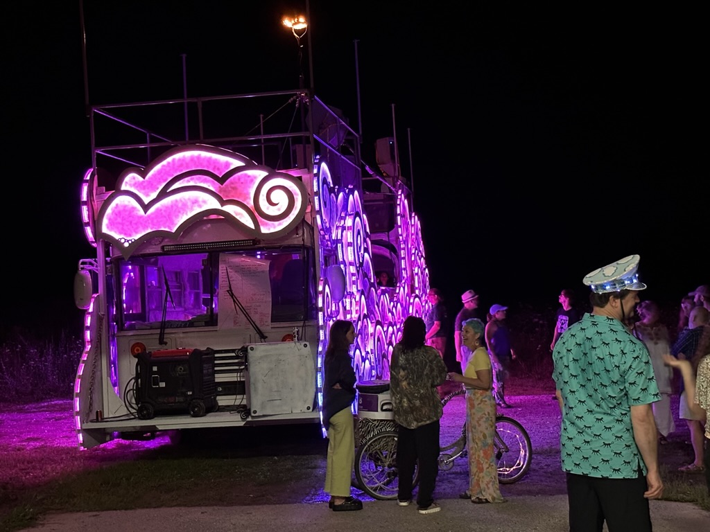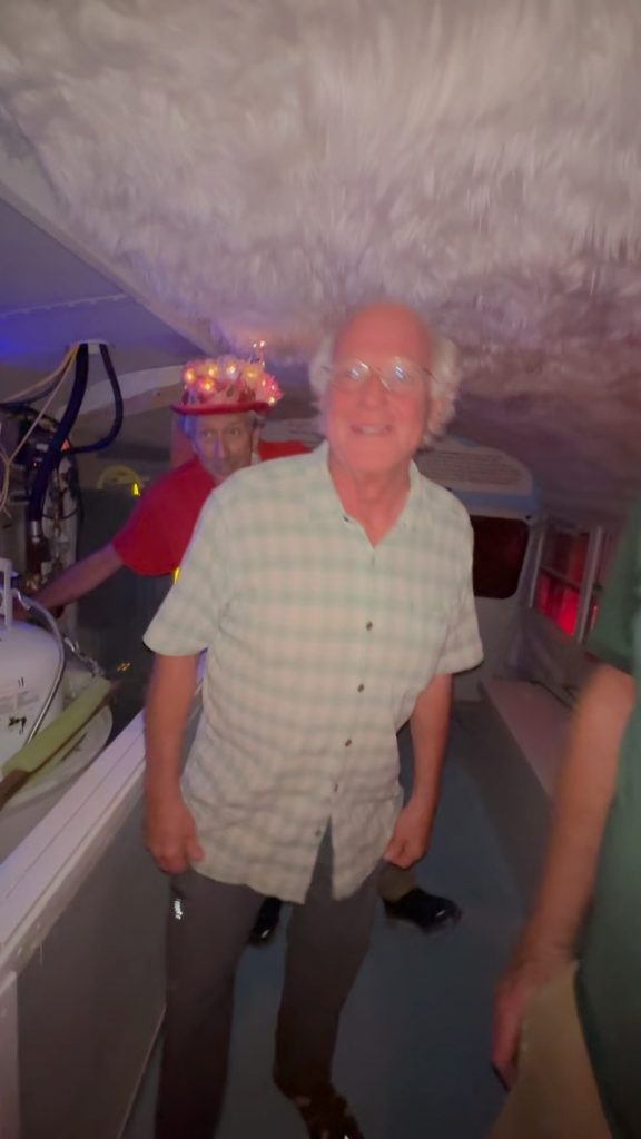 Sin ce we didnt get Fluffy to the Clarks party, we still havent had a full test of all of her systems.:driving, Ligts, fire and sound actually running on the generator. We chose today as the day we’d get everything working together… and we decided to invite the public.. It was hard to get a real count but I think we had soemwhere between 70 and 100 people come by to see . It was so much fun to see everythign work and to share it with our friends !