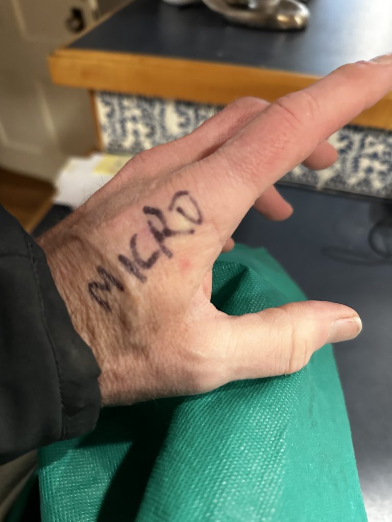 Happy that today is the day I head out to Portland to see Diane. Gabe. Same and Nova.. One of my main jobs was to take gabe microscope out. It’s at least 60 years old and pretty delicate.. so it had to be hand carried. I fitted out a pelican case for it and carried it on to the plane. I guess it looked pretty weird on X-ray because they took it apart to see what was in it. anyway.. got on board.. and wrote “micro” on my hand to make sure I didn’t leave it.. (also had a tracker on it)