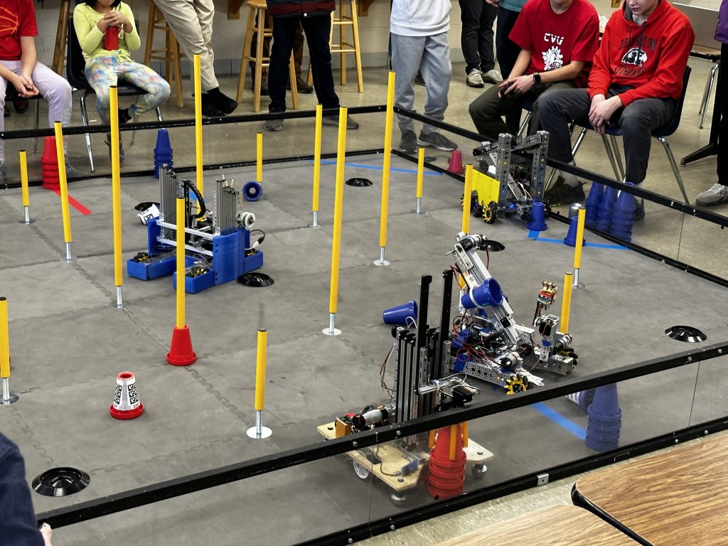 Later that afternoon I headed over to South Burlington high school for one of the FIRST TECH Challenge Scrimages.. The championship is only about 3 weeks away.. so the teams were super excited to test out their robots. This year we’ve already had 2 scrimmages like this which is Huge progress for us !