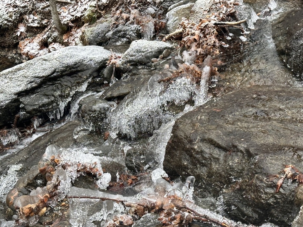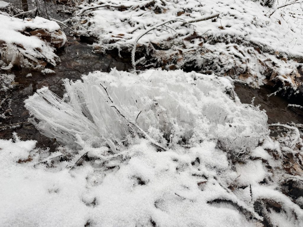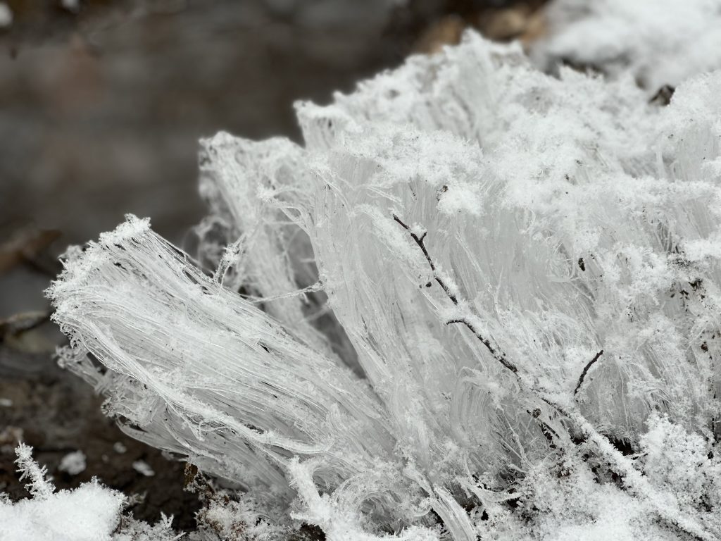 The hike down with much easier than the hike up. We were marveling at the cool ice crystals that were emanating from the ground. Somehow related to the perfect temperature and the perfect (?) Amount of rain we’ve been getting.