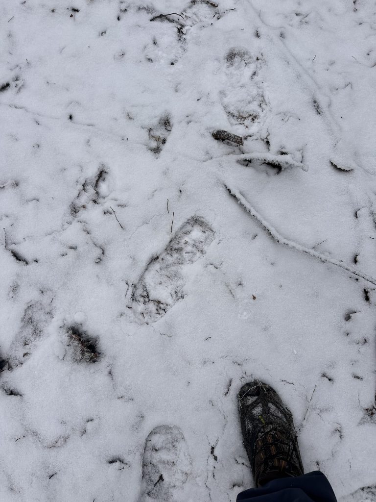 On the way up we ran in to our good friend Clint.. We saw his and his dogs footprints before we saw him. Once we got to the top, we had fun following his footprints to our favorite lookout. It’s a spot that used to be on the long trail.