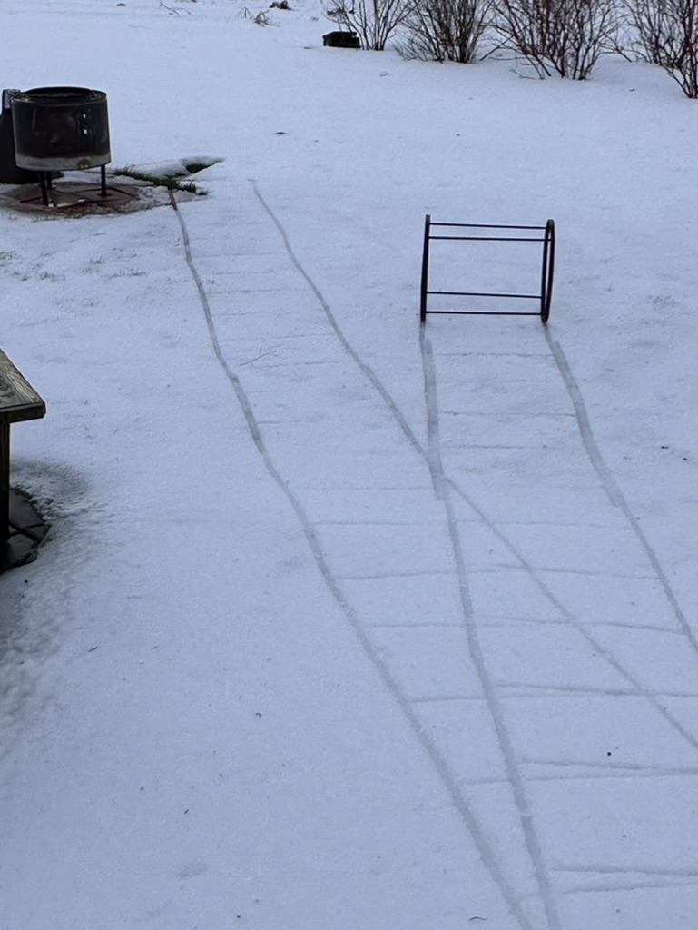 This morning we saw soem of the impact of the wind storms the last few days.. check out this cool pattern that part of our firepit made in the snow !