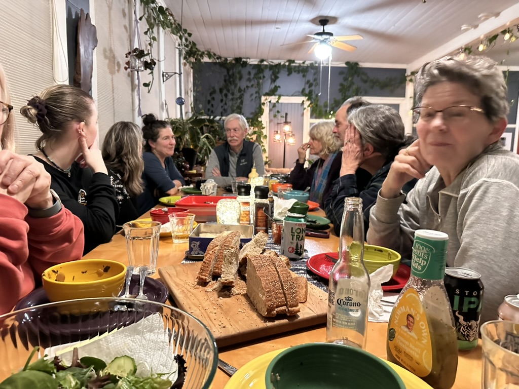 We had yog soup night today because the waether was too bad on monday. Always nice to see folks. Our old freinds Tom and Meg came.. Tom lived here in the house about 40 years ago (!).. we actully still have his speakers which are more than 50 years old !