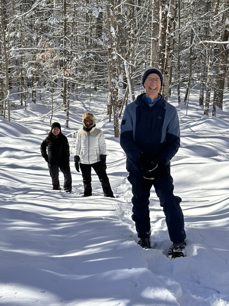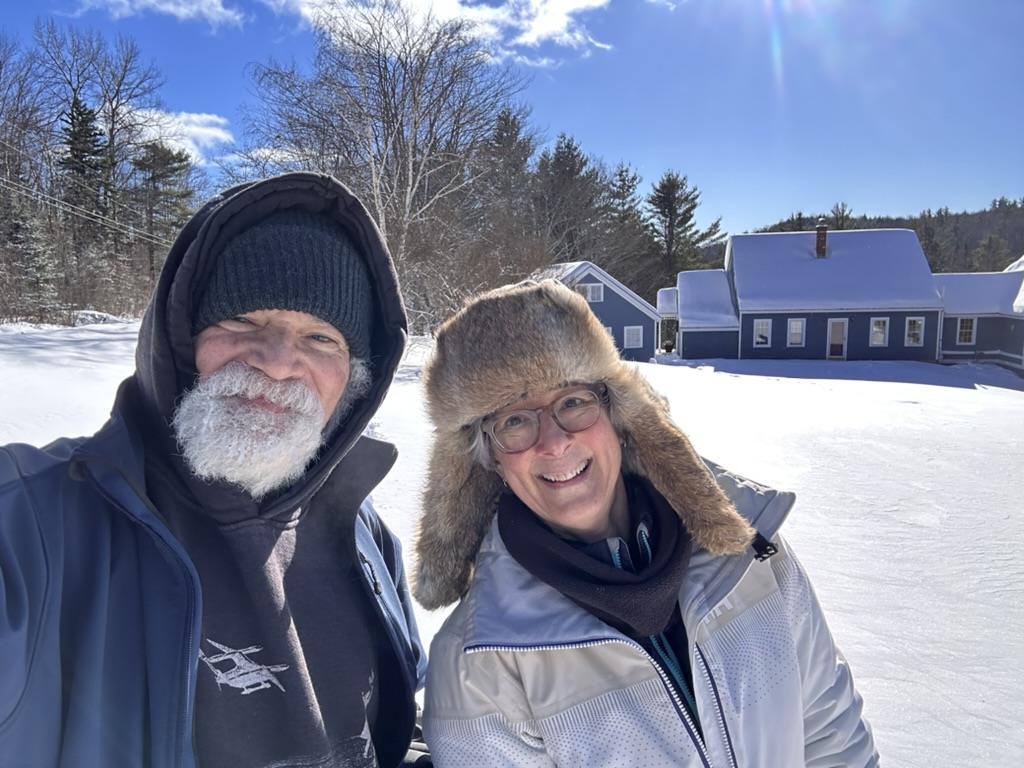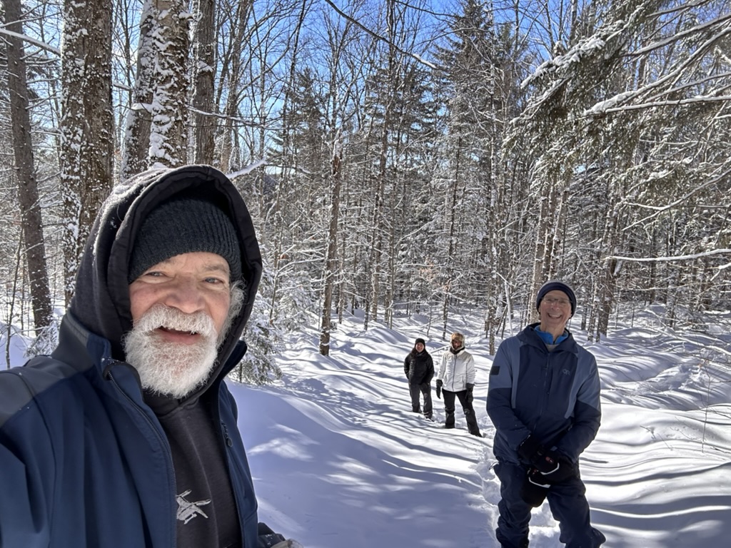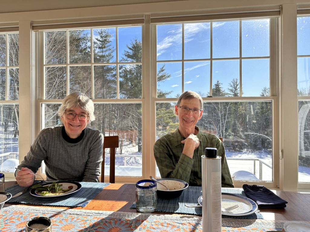 Mid day we packed the car with all our snow things: snowshoes, skis, crapons and worm clothes to get the most of the beutiful snow. We headed to our friends Sandy and Michaels in Middlesex. Sandy is one of my oldest friends.. We’ve known each other since 5th grade. I think thats about 53 years (!).. we were sort of neighbors back in Houston. My freidns all used to gether at sandys because her parent let us get aay with stuff.. they were great people.. and I miss them . Sandy graduated early and went up to UVM. I used to come up and visit from time to time when I was at MIT. I clearly remember standing outside a bakery on main street in burlignton at 20 below zero and wondering how the heck folks could live here.. That was 46 years ago (!!).