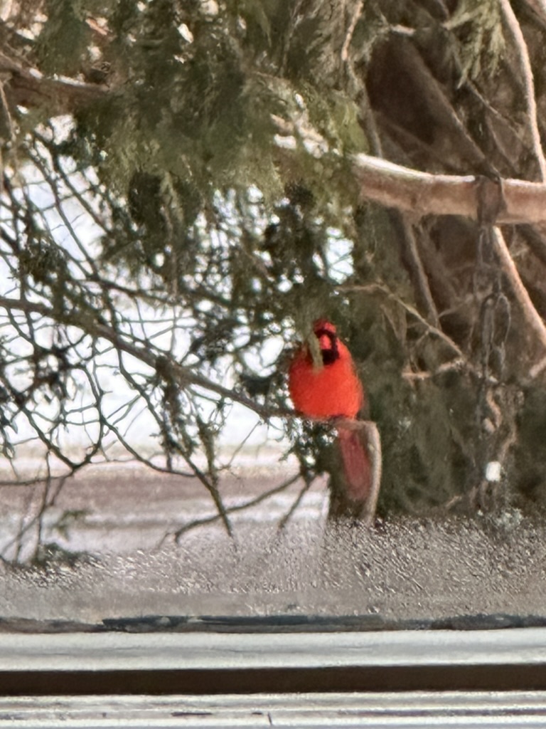 We often call a cloudless winter day a ‘blue bird day” .. we had one of those.. but I’d call it a “red bird day” because we had this guy looking in our window this morning