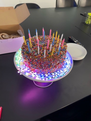 Today was my coworker and good freind Shannons 24th birthday birthday . Our freind Sophia had made a cake.. an I decorated it further with some LED lights I mad3e for SHannon as a birthday present.