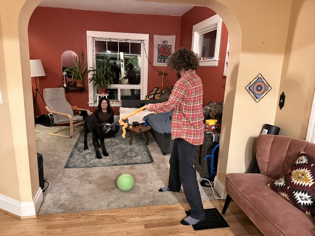 Gabe picked me up at the airport and we headed home . It was great to see him, sam and nova.. and Diane !.. We played with Nova, took a look at the jacobs ladder kit gabe had built