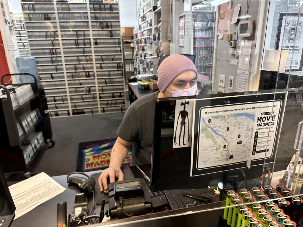 from there we crossed the street to go to Movie Madness.. The last big movie rental place in Portland.. It has so many movies that they made it a non profit museam.. IUts so cool to go through there. We were after the cult classic terrible moview the 1993 version of Mario Brothers with Bob Hoskins.. Probably the worst movie ever made !