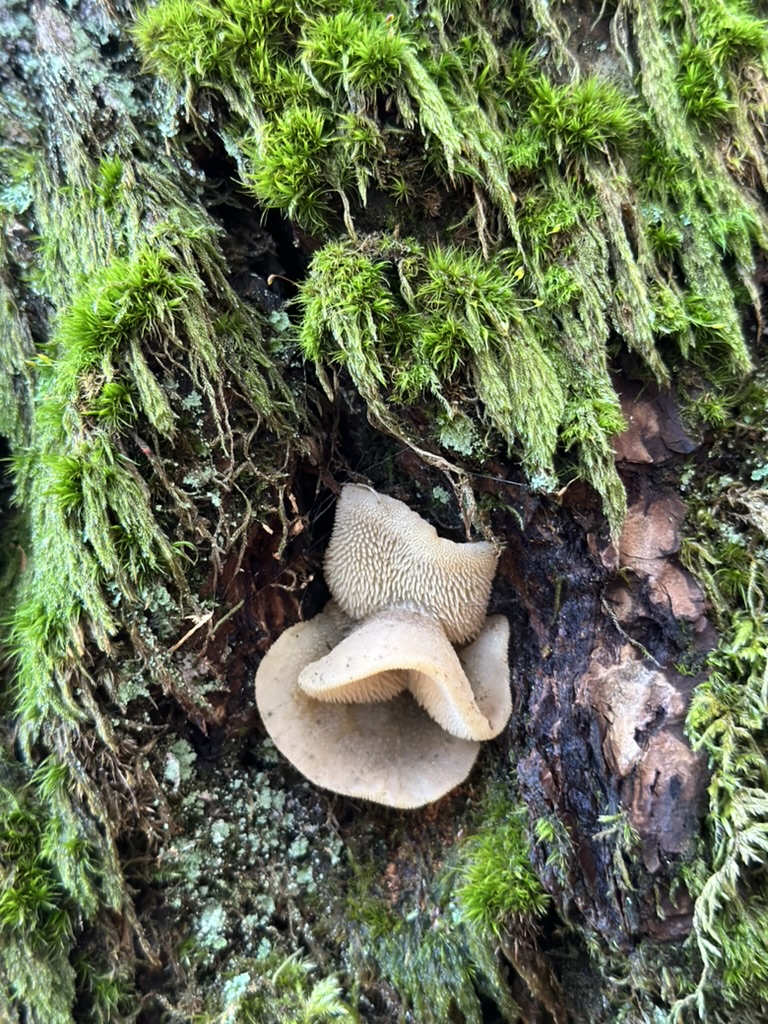 the walk back was pretty easy.. the late afternoon sun theough the trees and moss made it feel like Sasquatch was goign to come crashing out of the forest any minuit. We found these very cool fungi on the trees. Look like duck bills !