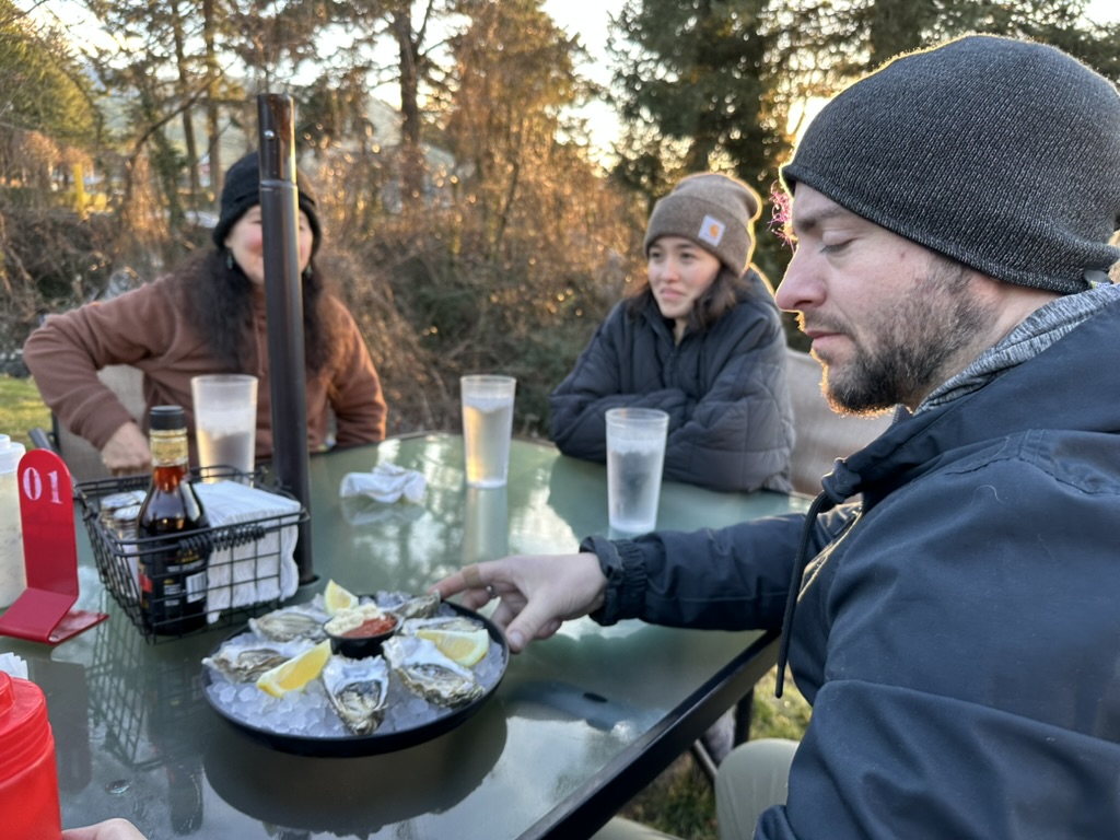 On the way home we stopped at our favorite fish resturant near bridge of the gods.. It was freezing outside. but not too cold for a shared set of fish and chips !