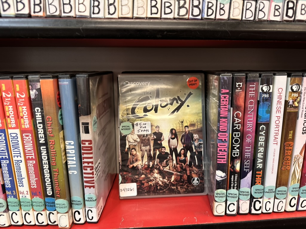 WHile looking for it.. I found a copy of the COlony season 1.. I asked the guy at the desk if it had ever been checked out.. it turns out it had.. .. just 4 times !. (but the second season disc had never been checked out 🙂